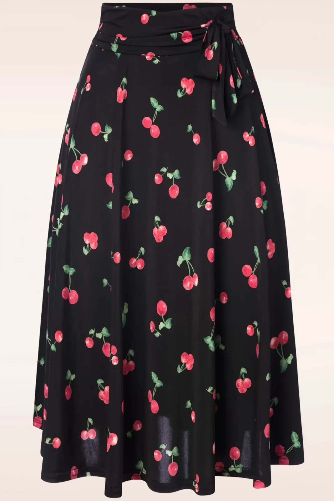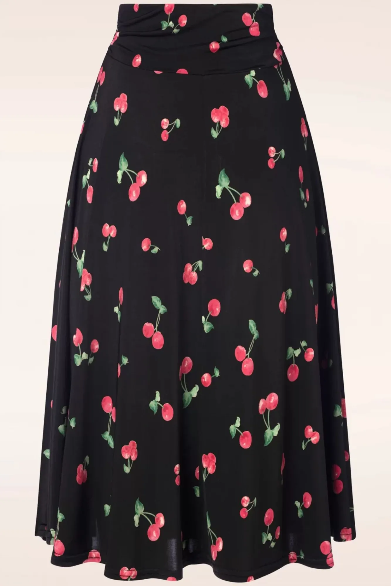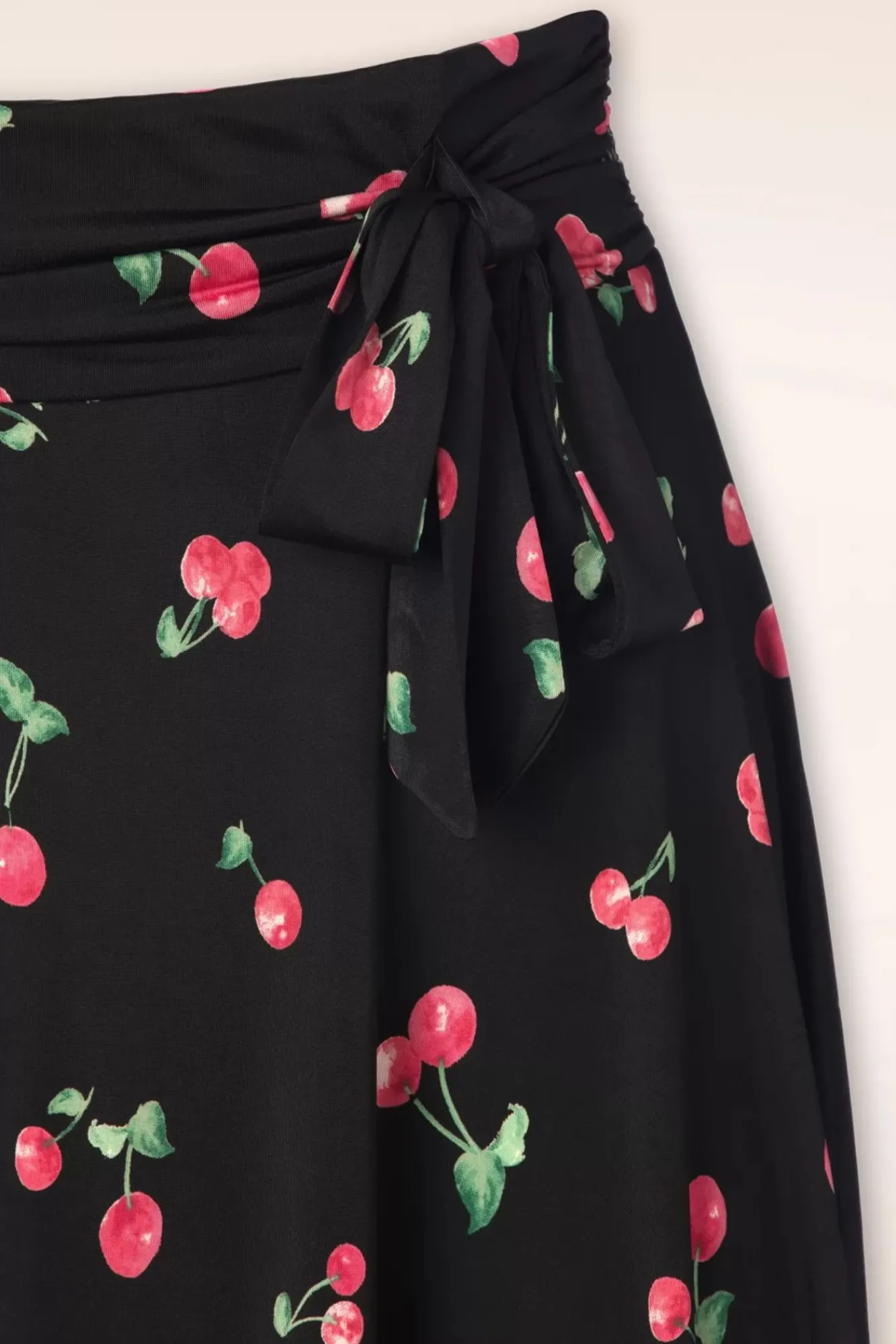 Deze Swing Beauty Is Een ‘Fruity Delight!’ 😉 Ze Is Uitgevoerd In Een Soepele En Stretchy, Zwarte Slinky Stof Met Kersjes Die Licht Van Gewicht Is, Een Subtiele Glans Heeft En Niet Kreukt. Roadtrip-Proof Indeed!