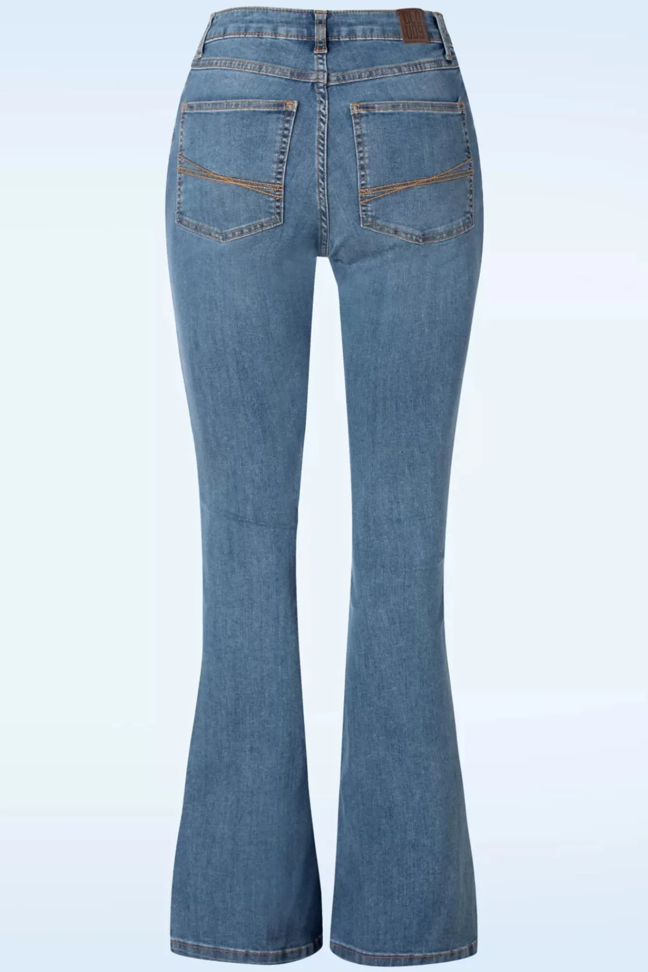 Deze Dora Flared Jeans Is Zó Comfy, Je Wilt Haar Iedere Dag Wel Dragen! Geen Wonder Dat De Flared Broeken Een Grote Trend Waren In De Seventies En Nu Een Fantastische Comeback Hebben Gemaakt! De Wijd Uitlopende Pijpen Zijn Niet Alleen Speels Maar Ook Nog Eens Super Flatterend. Uitgevoerd In Een Stevige Maar Stretchy, Licht Denimblauwe Biologische Katoenmix Voor Een Heerlijk Draagcomfort. ”How I Like My Trousers? Comfy, Fabulous And… Flared! ;-)”