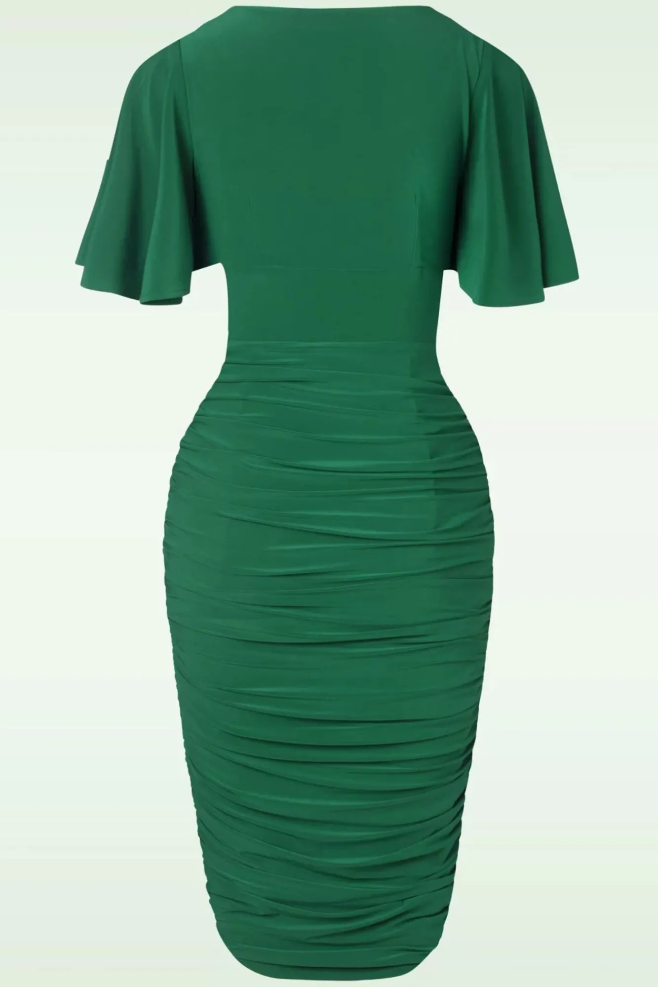 ”Prepare To Turn Heads” Wanneer Je The Eugenie Butterfly Pencil Dress In Green Draagt. Dit Seizoen Hebben Onze Eigen In-House Ontwerpers Zich Laten Inspireren Door Het Thema; ‘Love Is Like A Wild Flower!’ Wilde Bloemen Zijn Een Assemblage Van Verschillende Gevoelens En Texturen, Net Als Deze Nieuwe Lente/Zomer Collectie! Eugenie Heeft Prachtige 1/2 Butterfly Sleeves En Een Elegante Vaste Overslag Top. Je Lichaam Wordt Op Sublieme Wijze Geaccentueerd Door De Corrigerende Bengaline Shapewear. Hier Overheen Is Een Geplooide Stof Gedrapeerd Die Moeiteloos Alle Probleemzones Camoufleert. Uitgevoerd In Een Gladde En Soepele, Stretchy Groene Stof Voor Een ‘Divalicious’ Fit Die Nauw Aansluit Zonder Daarbij Af Te Tekenen. En Onthoudt Diva’s: ”The Joy Of Dressing Is An Art… And You Are The Masterpiece!”