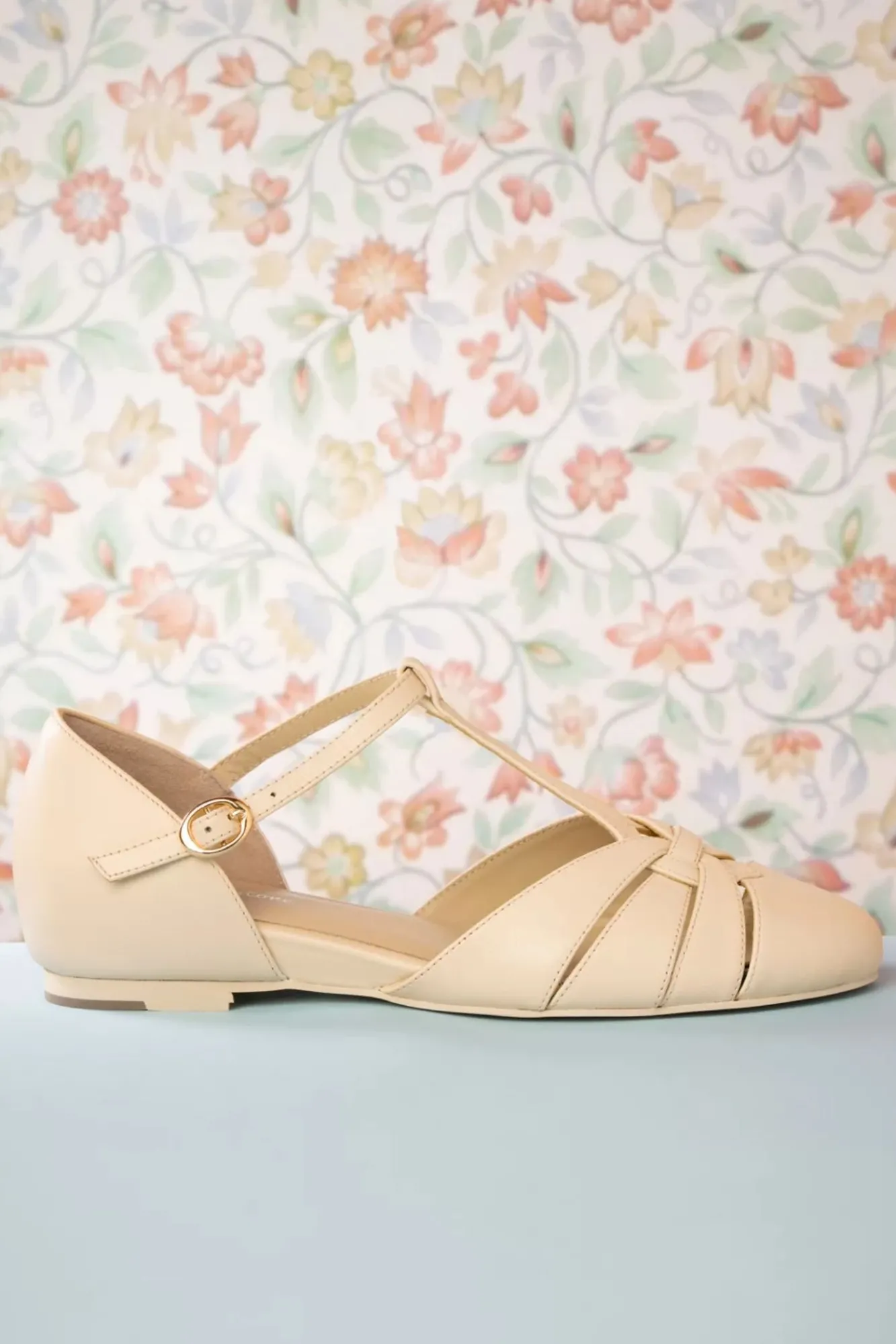 Geïnspireerd Op De De Stille Straatjes En De Veelal Crèmekleurige Architectuur Van Deze Oude, Prachtige Zuid-Franse Stad… Zeg ‘Oui’ Tegen Deze 50S Montpellier T-Strap Flats In Cream! Uitgevoerd In High Quality Crèmekleurig Leder Met Een Speels T-Strap Bandje En Sierlijke, Gevlochten Details Op De Wreef. Stap Stijlvol Het Voorjaar In Met Deze Platte Beauties Aan Je Voetjes!