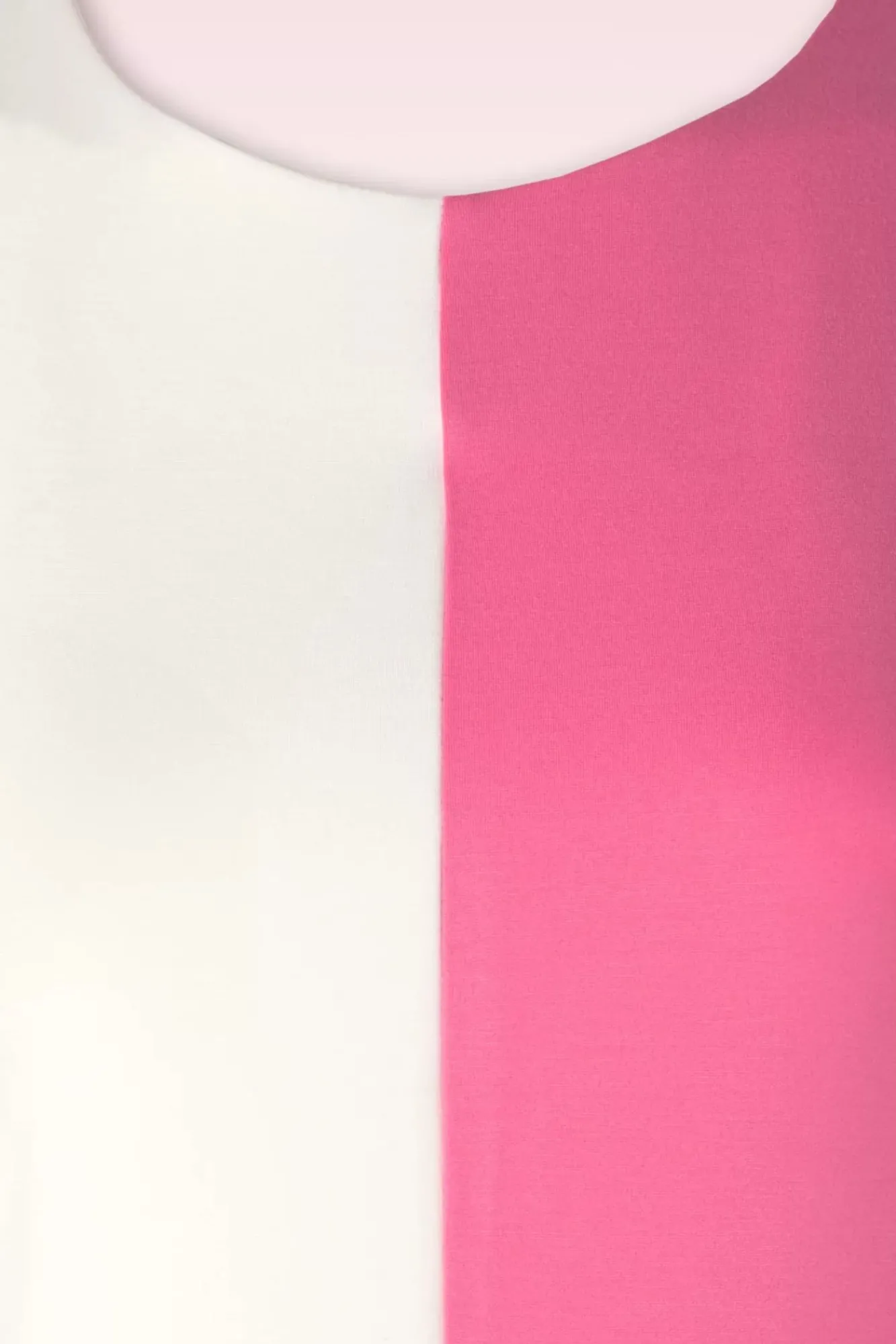 Je Krijgt Toch Meteen Mod Vibes Van Deze Sixties Cutie?! Haar Speelse A-Lijntje, Hoge Ronde Halslijn, Grote Sierknopen En Contrasterende Kleurgebruik Nemen Je Zo Mee Terug Naar De Sixties. Ze Is Uitgevoerd In Een Soepele En Stretchy, Roze En Witte Viscosemix Die Heerlijk Draagt. “Who’s That Sixties Babe?? You Are!”