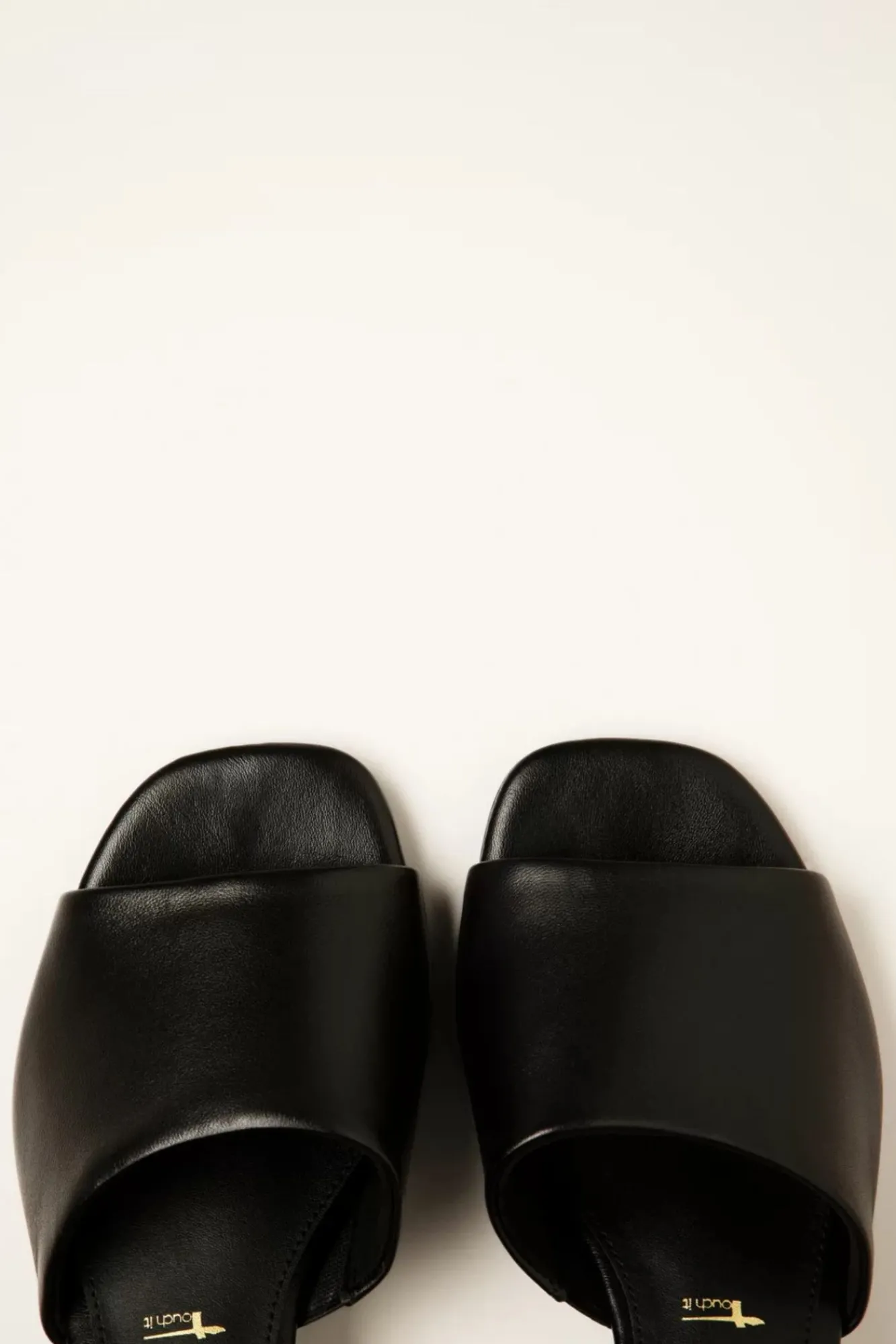 ”Just Slide In These Cuties And Look Stylish From Head To Toe!” Slip On Sandaaltjes Met Een Klein Blokhakje Uitgevoerd In Soepel, Zwart Leder.