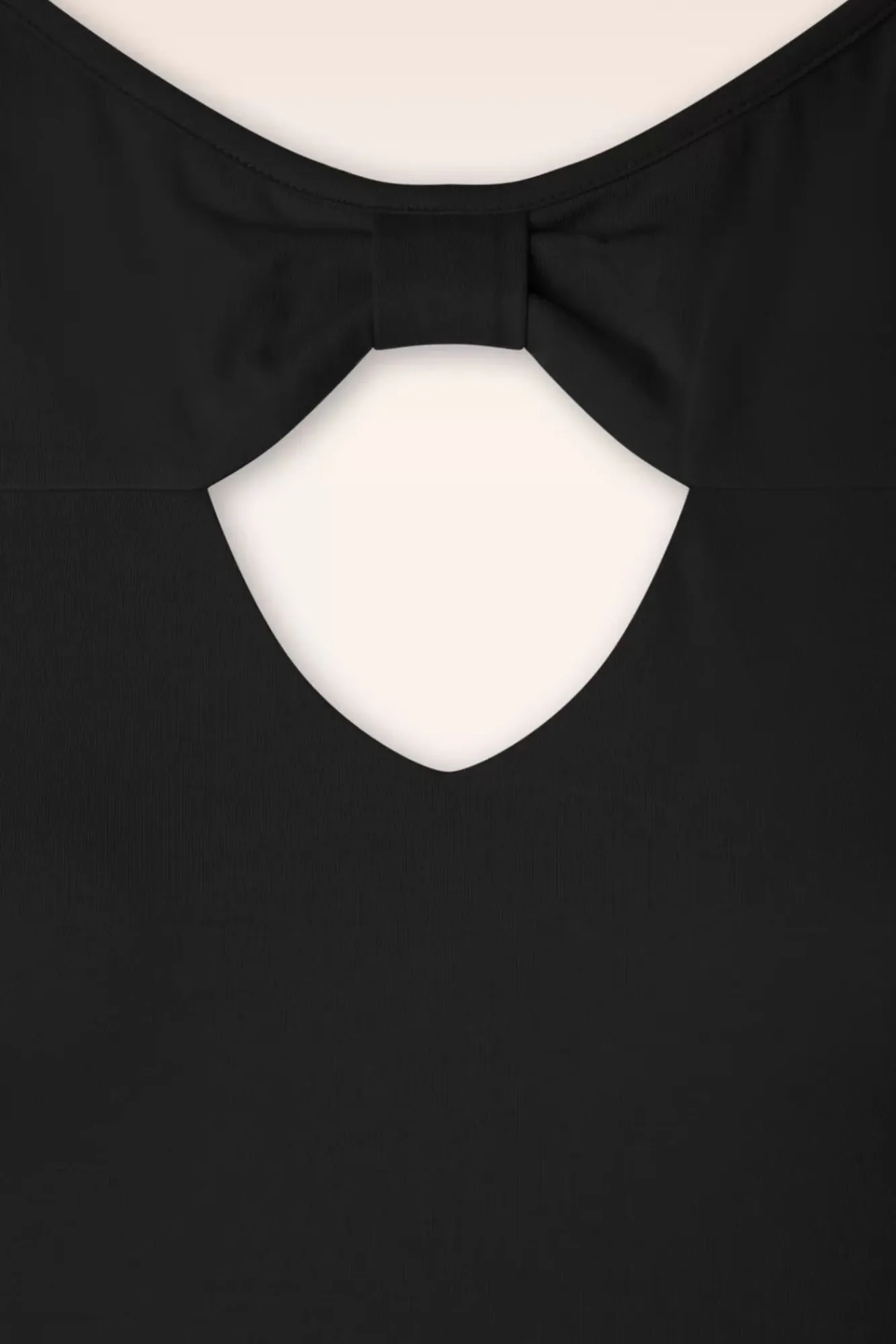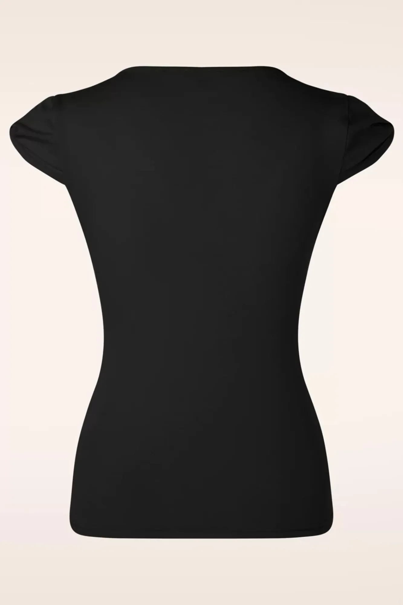 Deze Prachtige 50S Be Free Jersey Top In Zwart Past In Iedere Garderobe… Of Je Nu Een Pin-Up Girl, Rockabella Of Vintage Vixen Bent! Ze Heeft Een Ronde Halslijn Met Een Keyhole En Strikdetail En Schattige Opengewerkte Kapmouwtjes. Uitgevoerd In Heerlijk Soepel En Stretchy Katoen In Zwart Dat Zijn Perfecte Pasvorm Zal Blijven Behouden, Zelfs Na Een Aantal Wasbeurten. L-O-V-E!
