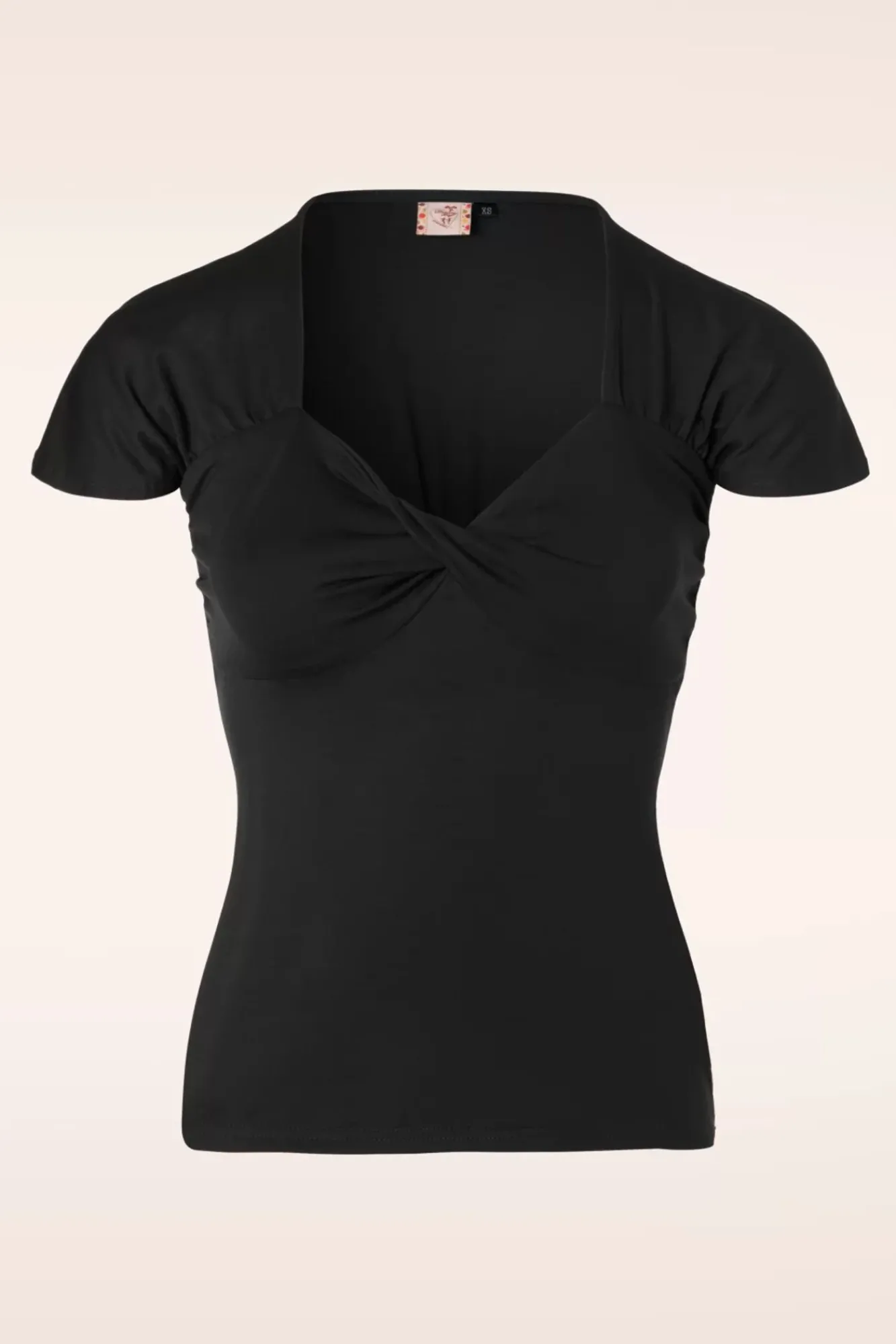 Deze 50S She Who Dares Top In Black Is Niet Alleen Voor Dames Met Een Flinke Dosis Lef! Haar Naam Doet Anders Vermoeden Maar Deze Prachtige Top Past In Iedere Garderobe, Of Je Nu Een Pin-Up Girl, Rockabella Of Vintage Vixen Bent! De Elegante Sweetheart Halslijn Die Speels Gedraaid Is Bij De Buste En Schattige Geplooide Kapmouwtjes Maken Haar Net Een Beetje Anders Dan Anders. Uitgevoerd In Een Heerlijke Soepele, Stretchy Zwarte Katoenmix Die Zijn Perfecte Pasvorm Zal Blijven Behouden, Zelfs Na Een Aantal Wasbeurten. Durf Jij Het Aan Om Deze Veelzijdige Top In Je Mandje Te Klikken?!