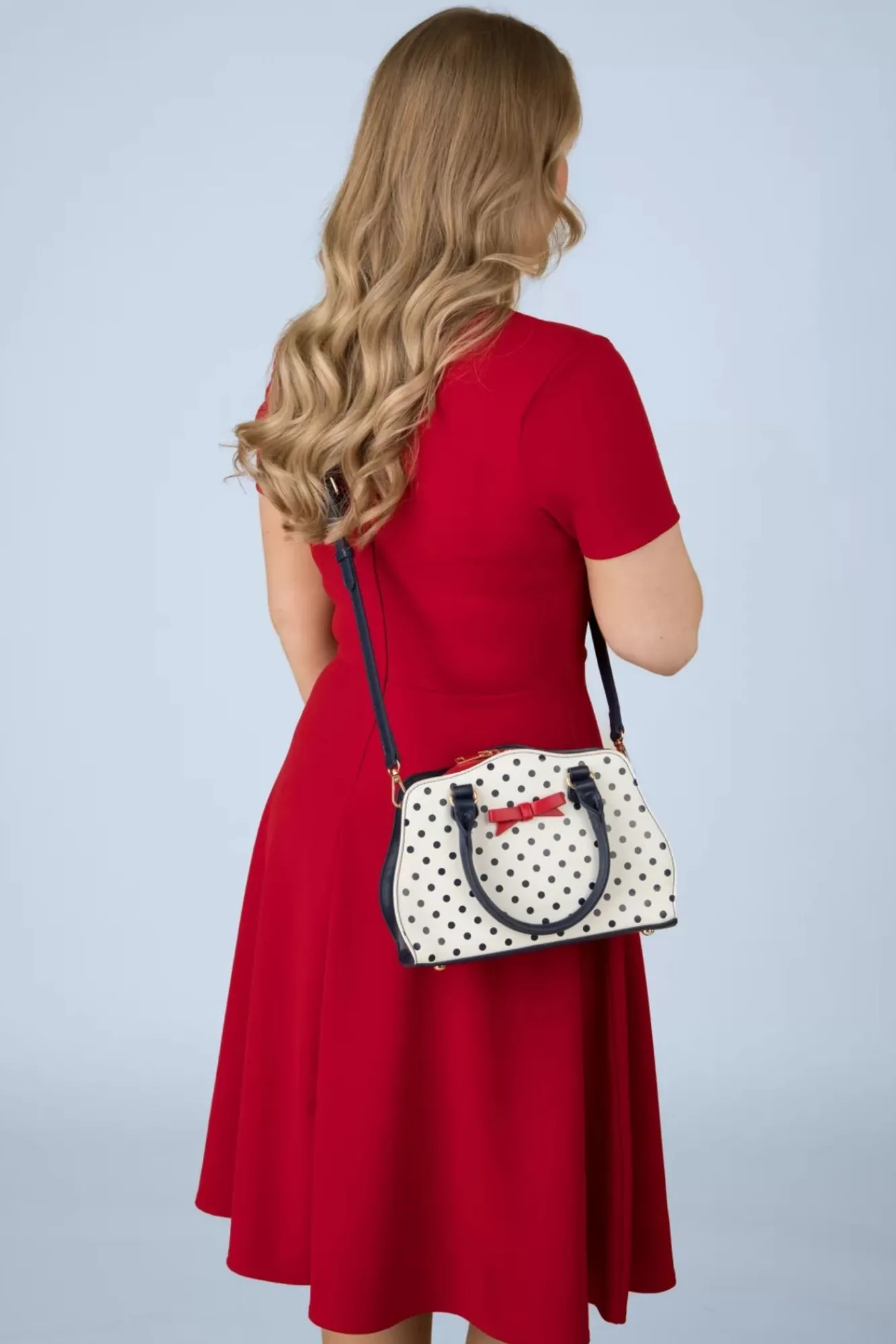 Is Het Geen Dotje?! Deze Schattige, Kleine Handtas Met Polkadots Is Uitgevoerd In Wit Imitatieleder Met Rode En Navyblauwe Accenten. Voorzien Van Een Afneembaar, Langer Hengsel Zodat Je Dit Schatje Ook Speels Om Je Schouder Kunt Dragen.