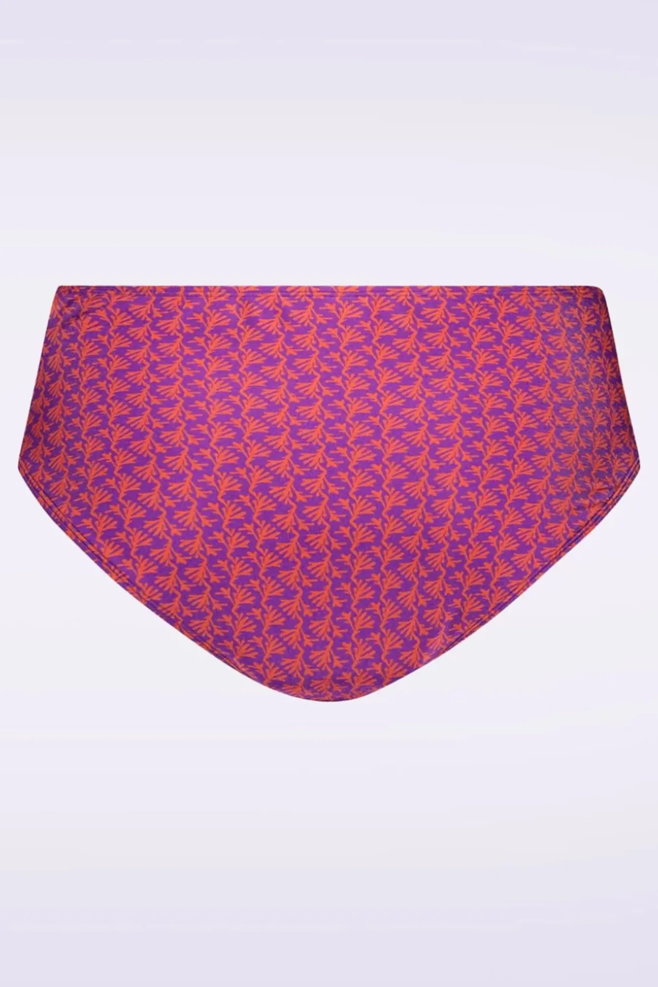 Nieuwe Lente/Zomercollectie ~ ”Mentally On The Beach!” Dit Mid Waist Broekje Is Uitgevoerd In Een Soepele En Stretchy, Gladde, Gerecyclede Stof In Paars Met Een Lichte Glans En Een Oranjerode Koraal Print Die Heerlijk Draagt..