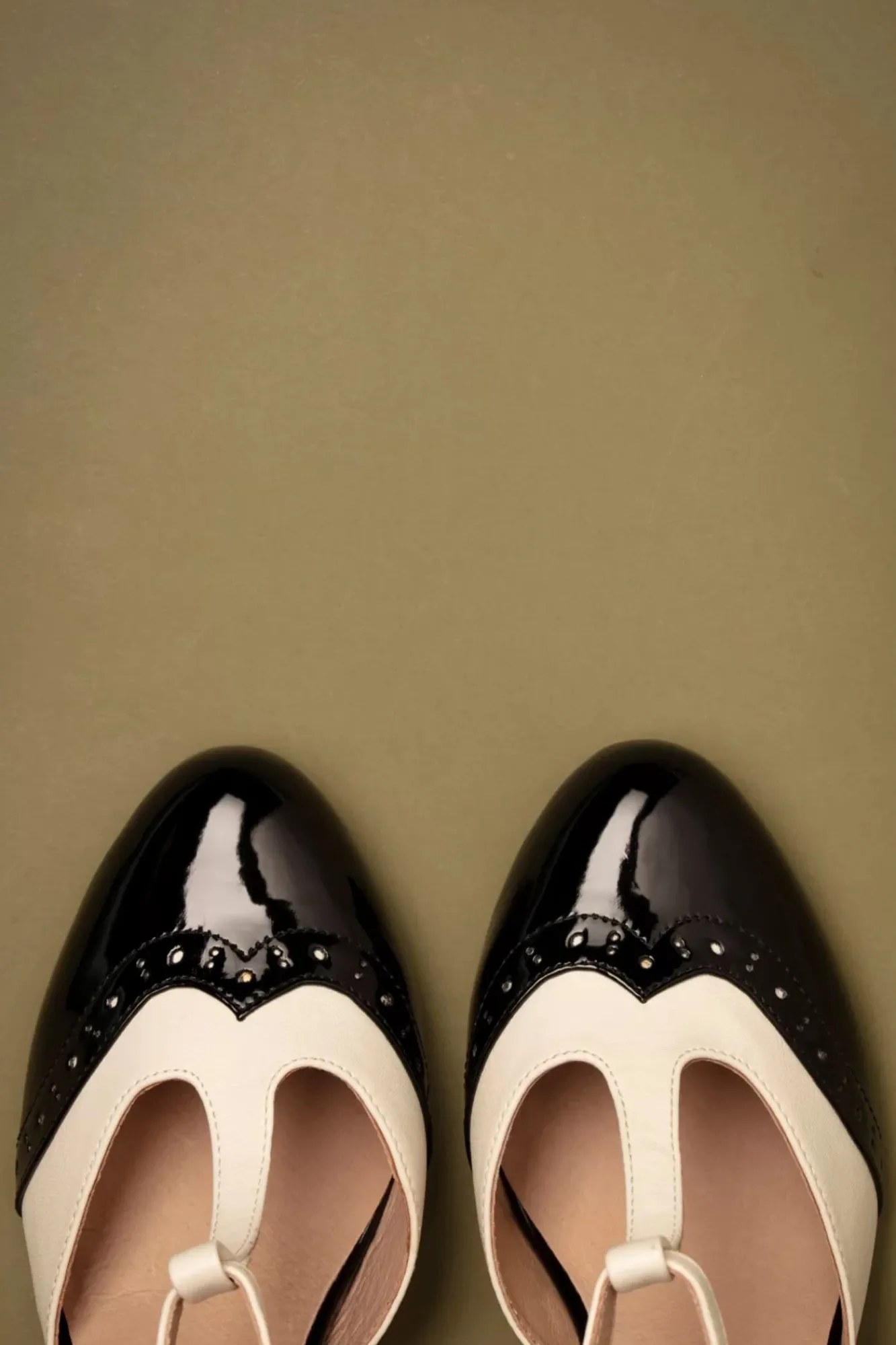 ”step Out In Style… Gatsby Style!” Stijlvol Voor De Dag Komen Doe Je Met Deze 20S Gatsby T-Strap Pumps In Black And White Aan Je Voetjes! Uitgevoerd In Een Combinatie Van Zwart ‘Faux’ Lakleder En Ivoorwit ‘Faux’ Leder, Afgewerkt Met Een T-Strap Bandje, Brogue Details En Een Hoge Hak. De Zachte Binnenzool Van Leder Zorgt Bovendien Voor Een Aangenaam Draagcomfort. Stap Terug In De Jaren 20 ‘And Have A Roaring Good Time’!