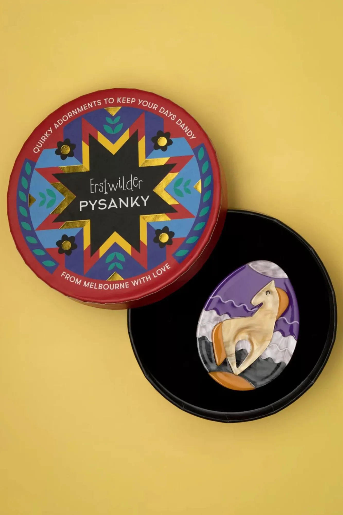 ”speed Through Your Toughest Challenges, Endure And Overcome. Prosperity Awaits For Those Who Hold This Egg In Their Hands And Hope In Their Heart.” Met Trots Mogen We Zeggen Dat Deze Horse Of Hope Brooch Uit De ‘Pysanky’ Collectie Online In Nederland, Duitsland En België Exclusief Bij Topvintage Verkrijgbaar Is! Pysanky Is Een Oekraïens Paasei, Versierd Met Bijenwas En Kleurstof. Het Woord Komt Van Het Werkwoord ‘Pysaty’, Oftewel ‘schrijven’, Omdat De Ontwerpen Niet Worden Geverfd, Maar Geschreven Met Bijenwas. Deze Broche Is Handgemaakt, Hand Beschilderd En Uitgevoerd In Verschillende Lagen Hars In Prachtige Kleuren. Hoop In Je Hart En Deze Beauty Op Je Outfit!