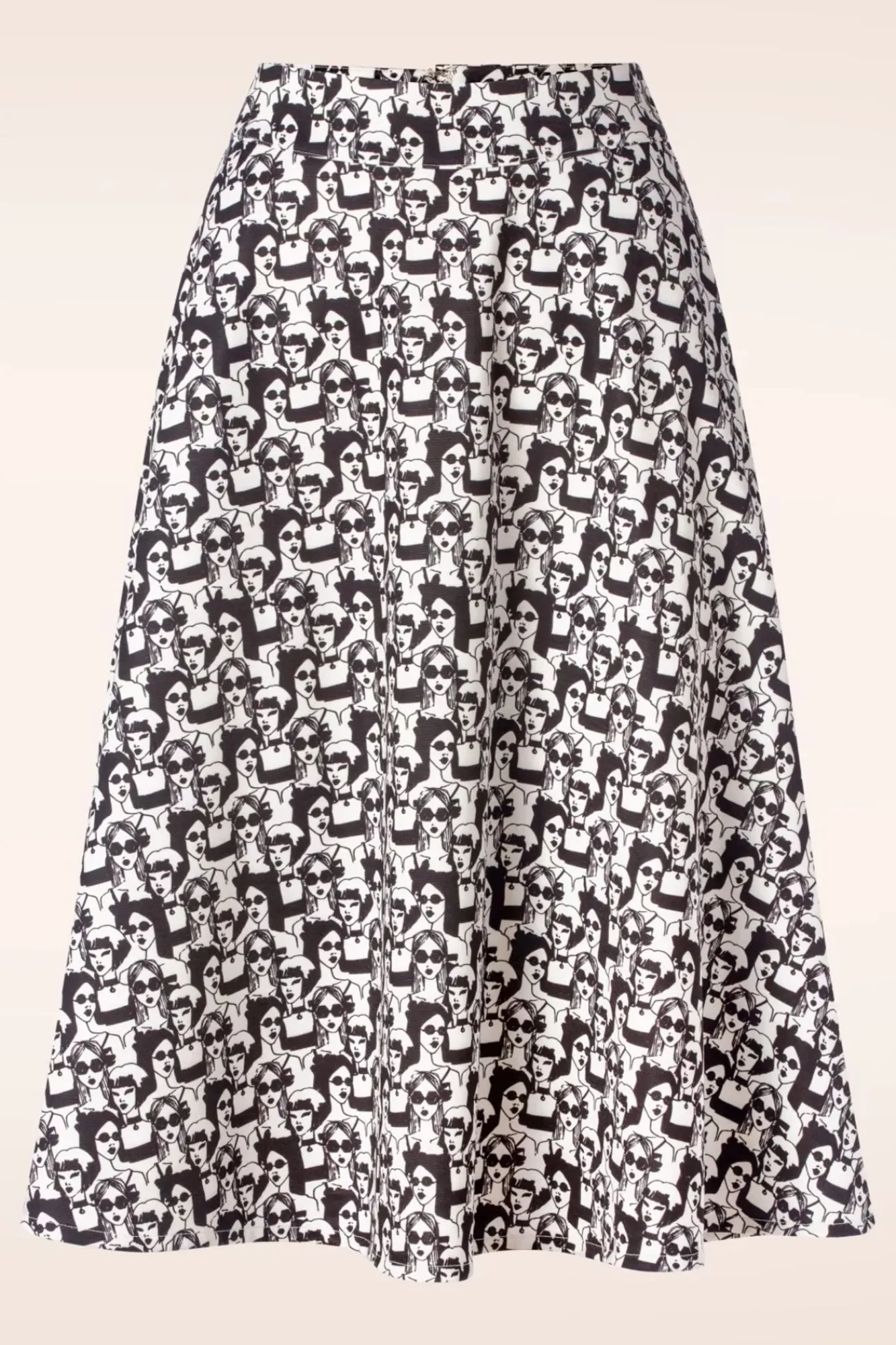 ”Life Is A Fashion Show And The World Is Your Runway!” Deze Stijlvolle Swing Rok Is Uitgevoerd In Een Ietwat Dikkere Maar Soepele, Stretchy Ivoorwitte Stof Die Heerlijk Draagt Met Een Opvallende Zwarte Print Van Fashion Girls Met Hun Typische ‘Je Ne Sais Quoi’ Attitude! ”This Is Your Moment, Own It!”