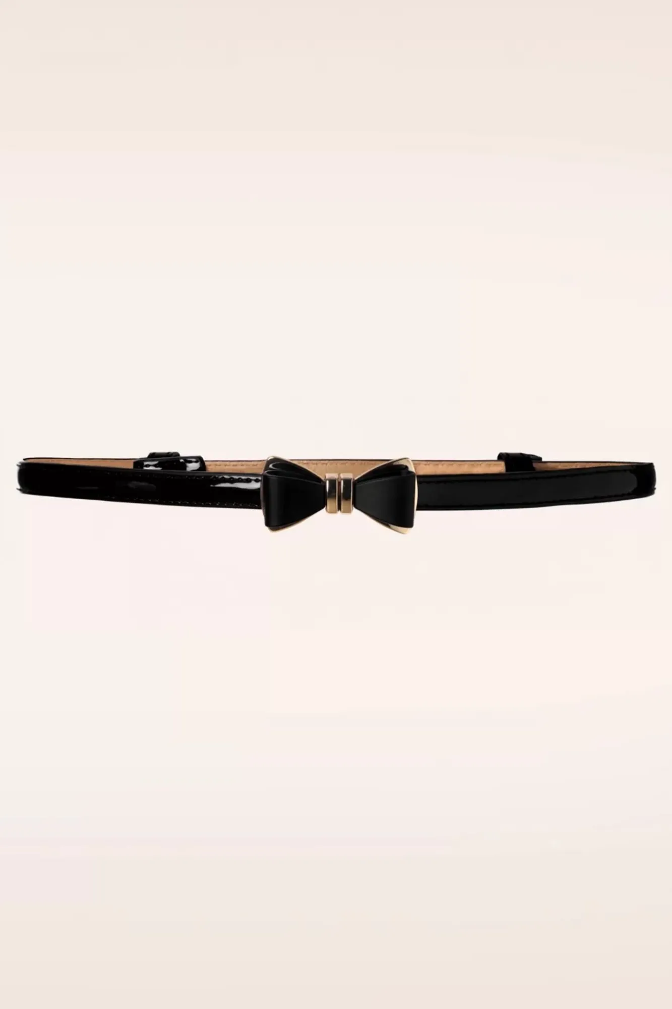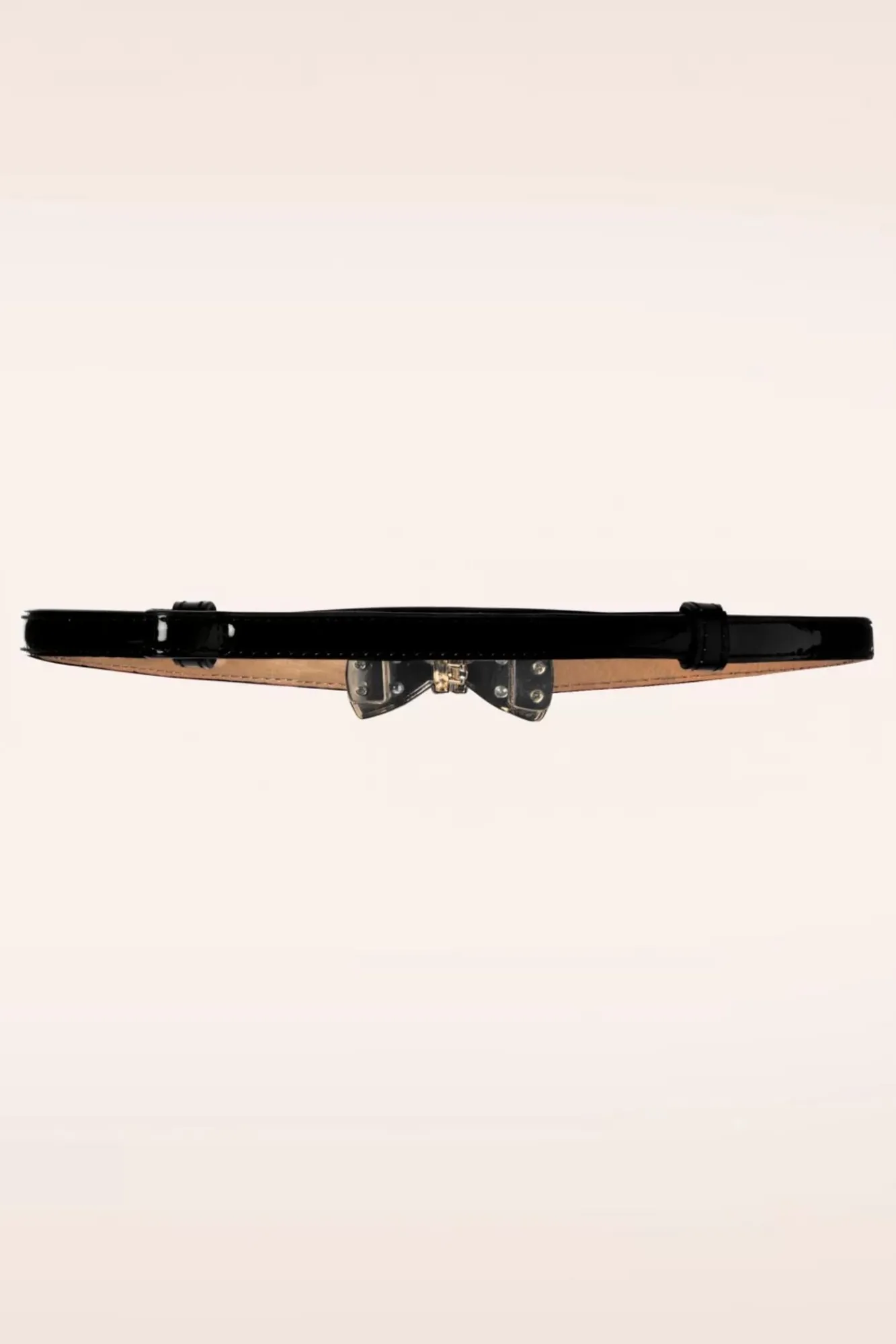Deze 50S Ocean Avenue Bow Belt Is Een Classy Riem In Vintage Look En Een Aanvulling Op Elke Outfit. Deze Prachtige Smalle Verstelbare Ceintuur Is Uitgevoerd In Zwart ‘Faux’ Lakleder Met Een Elegant Goudkleurig Strikje, Très Chique! Subtiel Riempje Met Een Hoge Wow-Factor En Een Echte Must-Have Voor Alle Vintage Ladies!