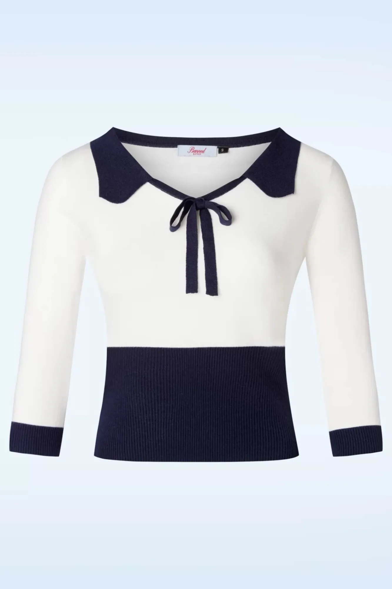Deze Olivia Jumper In Navy Is Super Schattig! Dit Lieflijke Truitje Heeft Een Elegante V-Hals Met Een Afgerond Kraagje, C-U-T-E! Een Schattig Klein Strikje Zorgt Voor Een Verrassing Aan De Voorzijde En De Brede Ribboord Op Het Lijfje Geeft Je Een Super Flatterend Silhouet. Uitgevoerd In Een Stretchy, Fijngebreide Marineblauwe En Witte Viscosemix Die Heerlijk Draagt. Deze Cutie Mag Je Niet Laten Liggen! 😉
