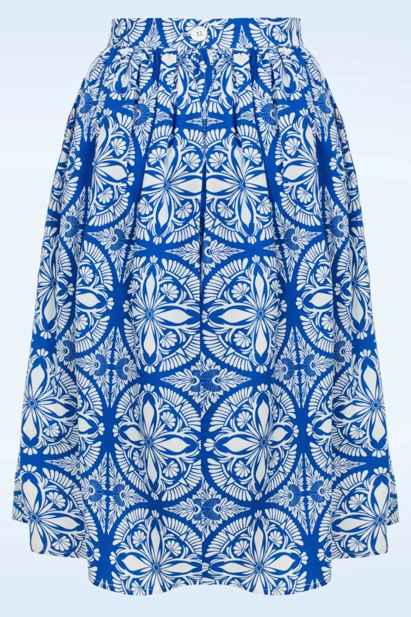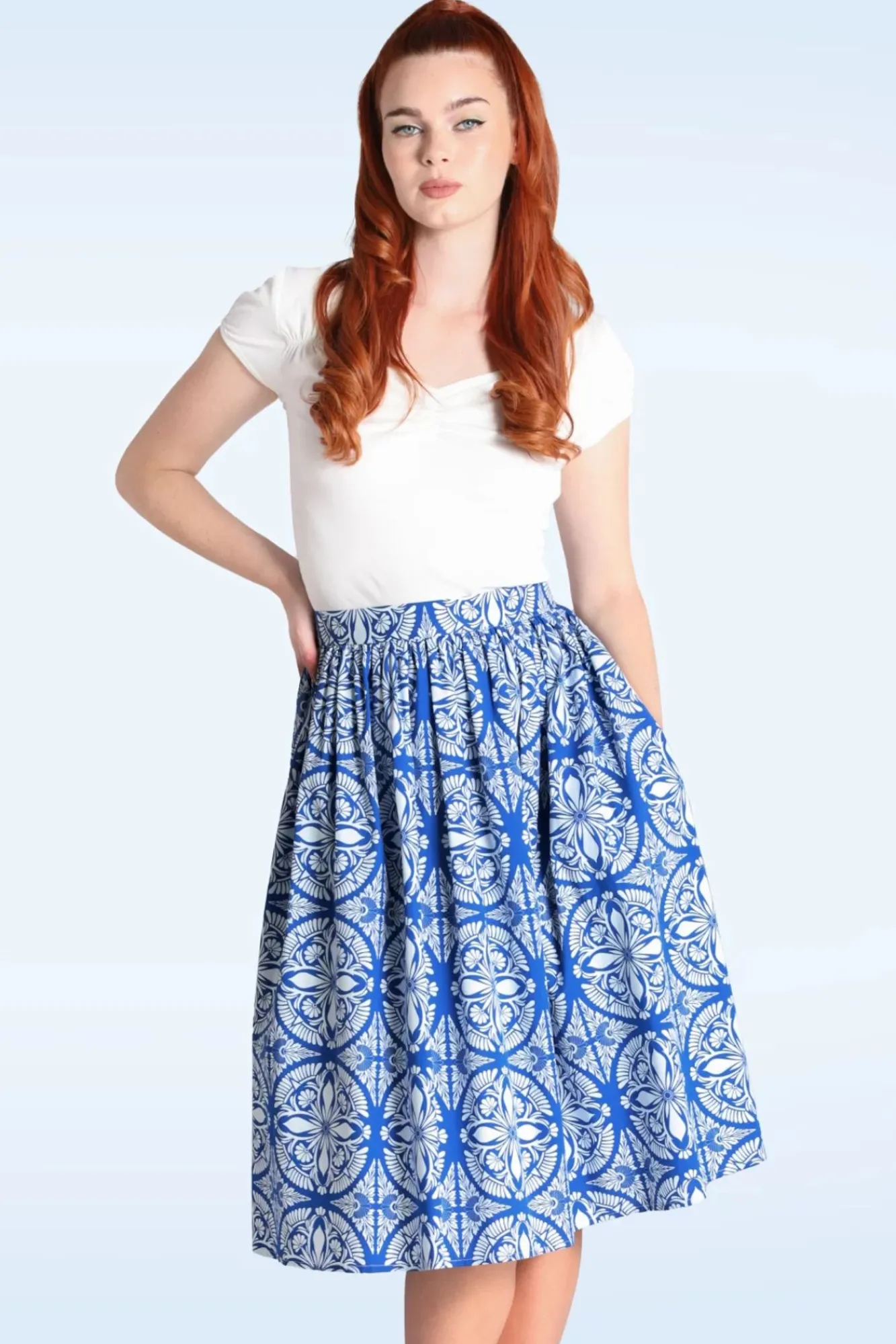 Waan Je In Italiaanse Sferen…In Deze Sicily Swing Rok! Uitgevoerd In Een Luchtige En Soepele Blauwe Katoenmix Voorzien Van Een Witte Bloemenprint, Die Heerlijk Draagt.