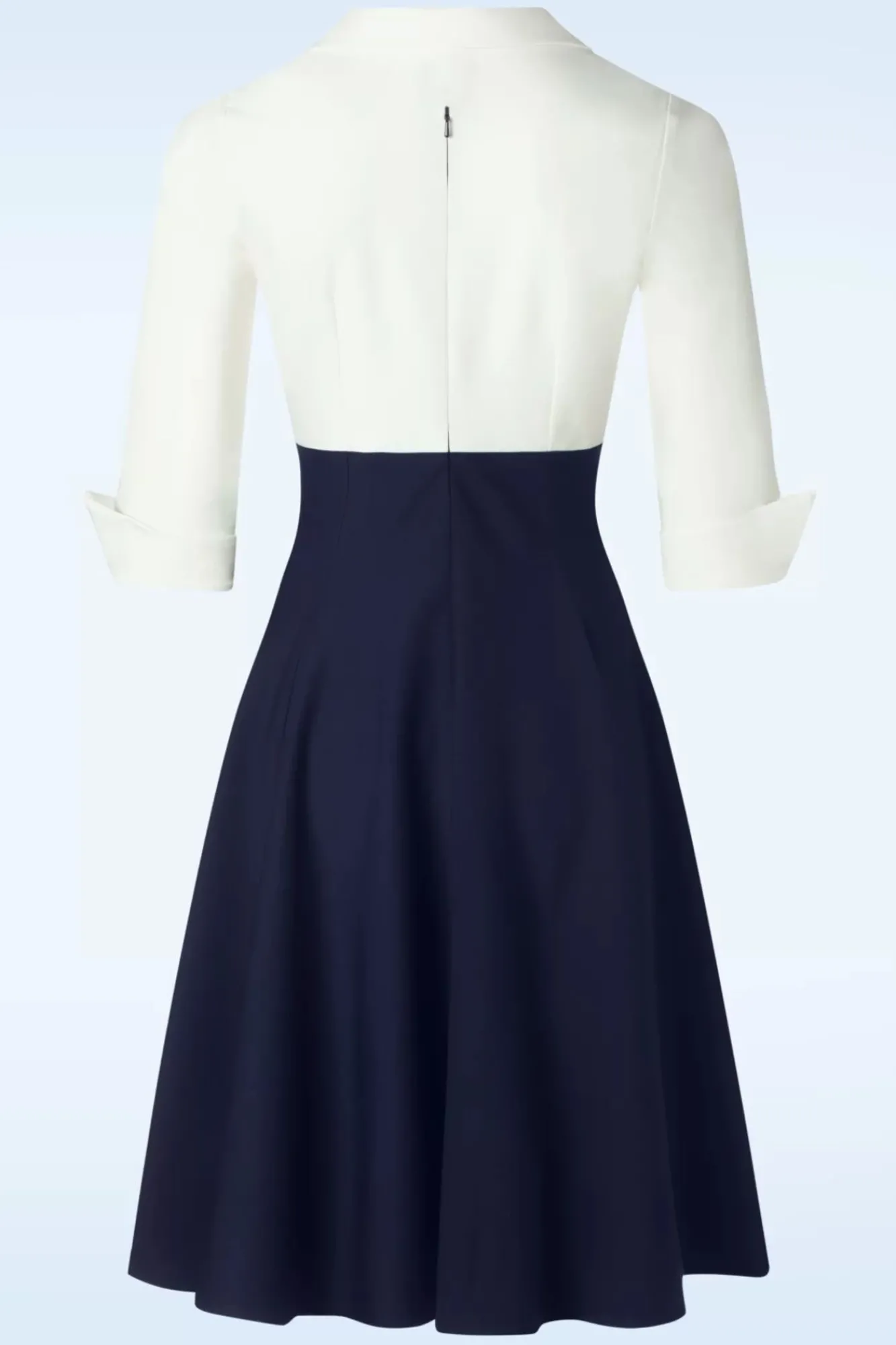 ‘Invest In Yourself… En In Dianne!” Dit Seizoen Hebben Onze Getalenteerde In-House Designers Zich Laten Inspireren Door Draagbare En Klassieke Silhouetten Met Een White Collar Edge; Items Voor De Power Vrouw Die De Zakenwereld Omver Blaast Met Haar Hyper Vrouwelijke Silhouet. Dianne Is Uitgevoerd In Een Stevige Maar Toch Soepele, Wit/ Marineblauwe Stof Met Een Lichte Stretch Die Gracieus Met Je Meebeweegt!