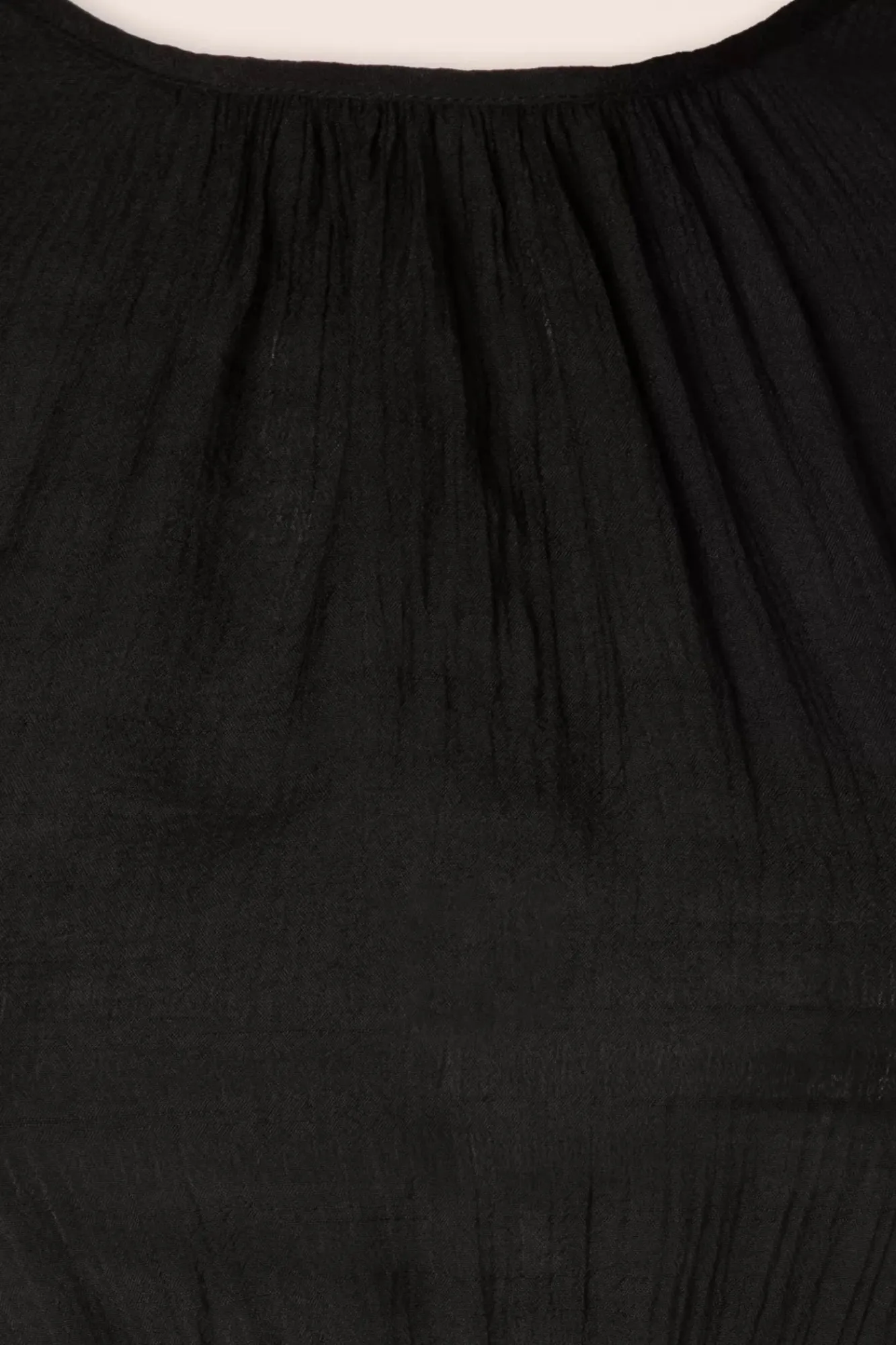 ”Every Woman Needs Good Basics!” Ze Is Uitgevoerd In Een Luchtige, Soepel Vallende En Licht Doorschijnende Zwarte Viscosemix, Met Een Getextureerde Linnen Look.