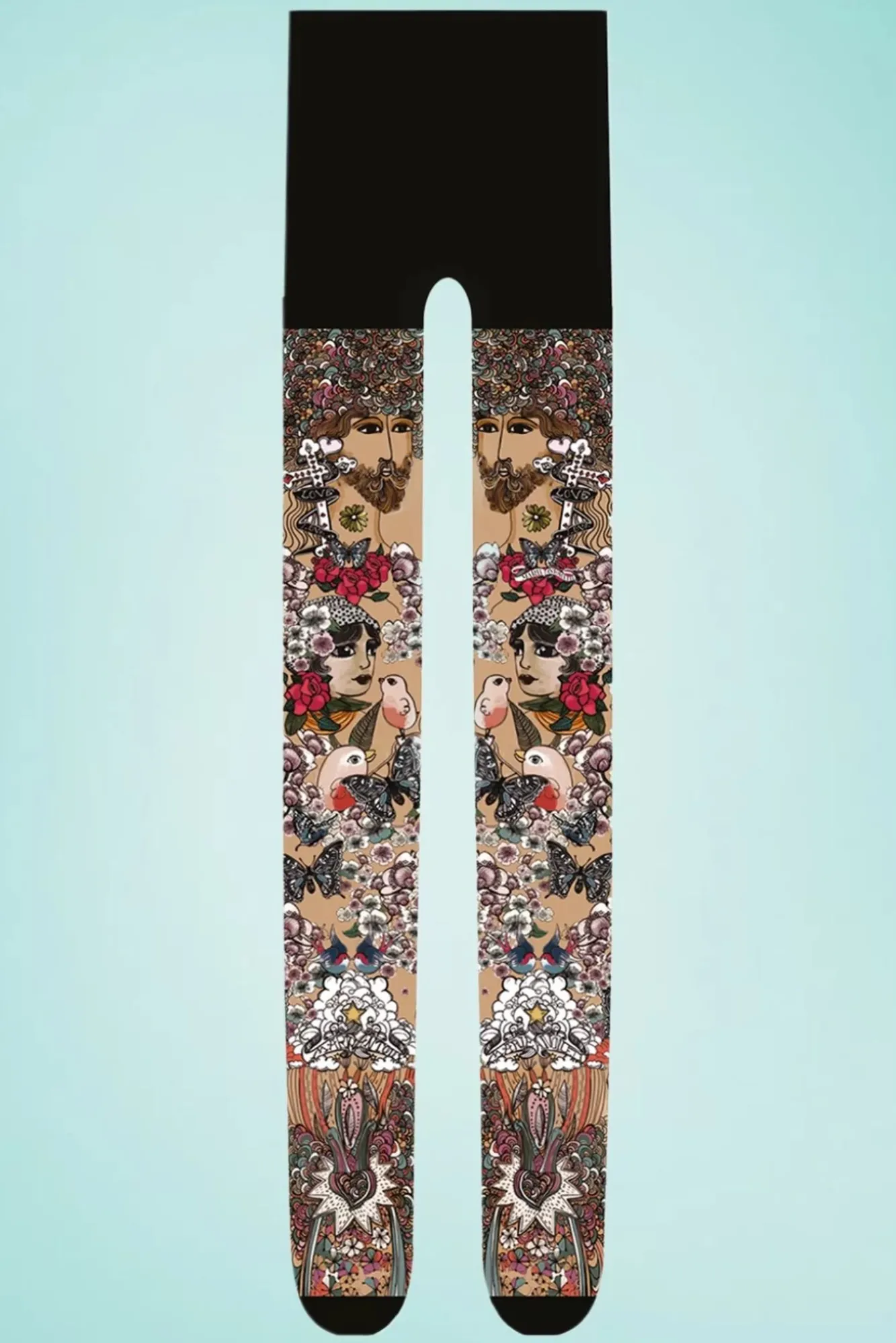 Ze Worden Met Liefde En Passie Ontworpen En Bedrukt In Een Atelier In De Buurt Van Lyon En Zijn Dan Ook Echte Kunstwerkjes Aan Je Benen! Deze 50S Joséphine Tights Uit De ‘Tattoo’ Collectie Zijn Uitgevoerd In Een Beige Stofje Voorzien Van Zwaluwen, Bloemen En Typische ‘Rockabilly’ Details. Ze Zitten Heerlijk Comfortabel Om Je Benen En Stretchen Goed Mee. ”Rock Your Legs!”