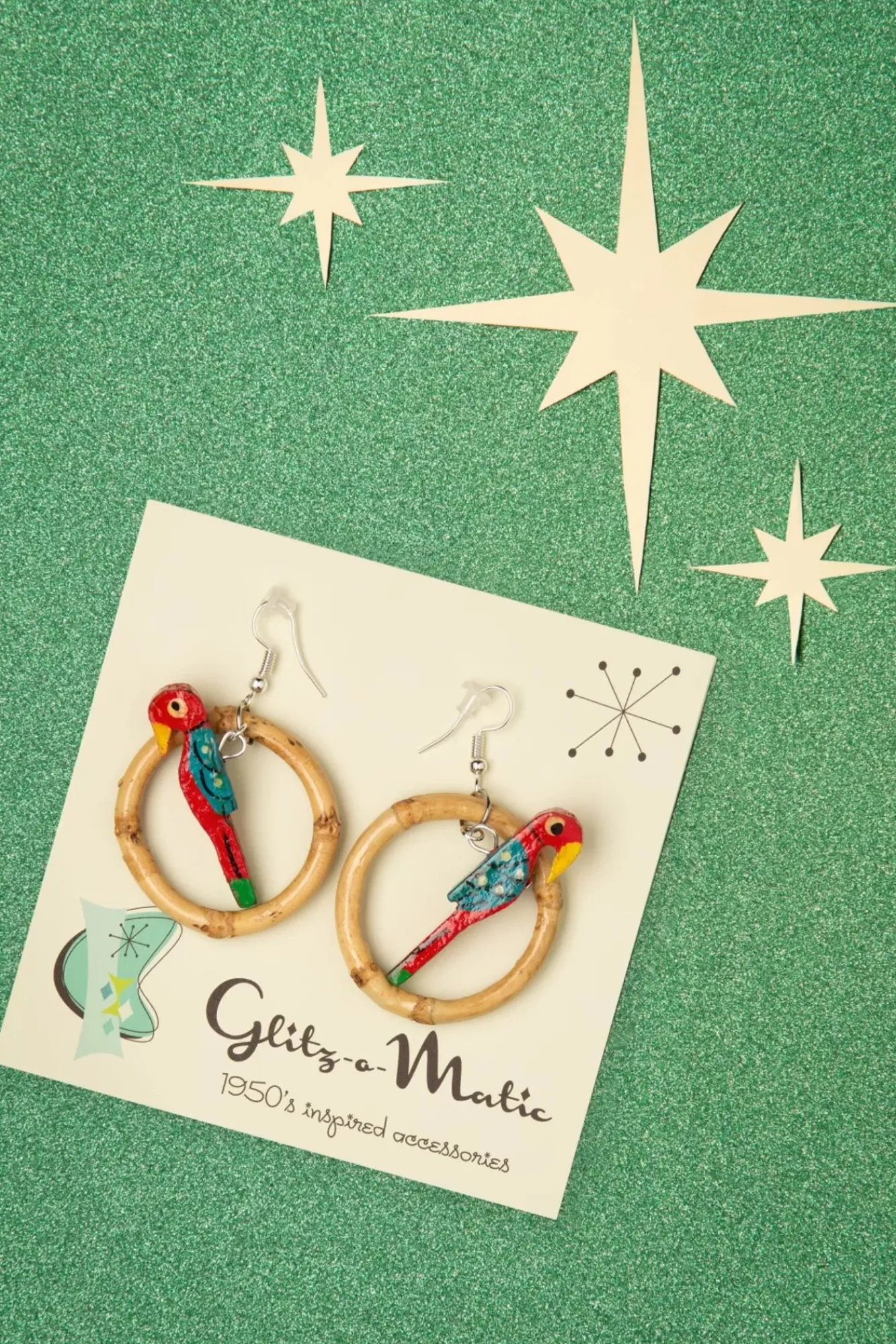 Met Deze 50S Parrot Bamboo Hoop Earrings In Red Maak Jij Je Tropische Tiki Outfit Helemaal Compleet! Deze Set Gelakte Ronde Oorhangers Van Bamboe Zullen Je Oren Op Prachtige Wijze Sieren, Terwijl De Eigenwijze Papegaai In Rood Er Een Tropische Twist Aan Geeft! Een Prachtig Handgemaakt En Uniek Sieraad. Met Deze Cuties In Je Oren Stijgen De Temperaturen Vanzelf Naar Tropische Hoogtes!