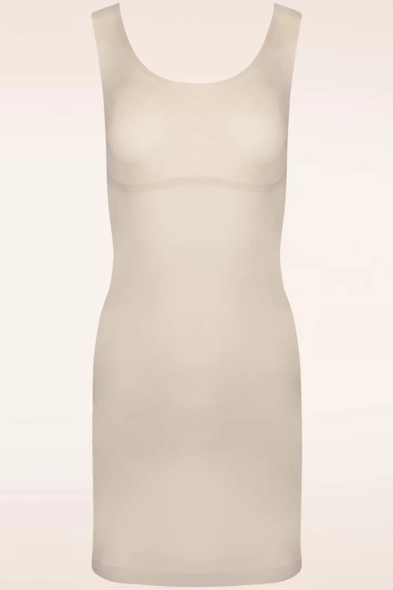 Creëer Je Droom Silhouet En Zorg Er Tegelijkertijd Voor Dat Ieder (Strak) Jurkje Perfect Zit! Dit Comfortabele, Body Hugging Onderjurkje Voelt Aan Als Een Tweede Huid En Shaped Je Hele Bovenlichaam, Je Heupen En Je Bovenbenen. Gemaakt Van Een Glad En Stevig Crèmekleurig Gerecycled Stofje Met Een Naadloze Afwerking.