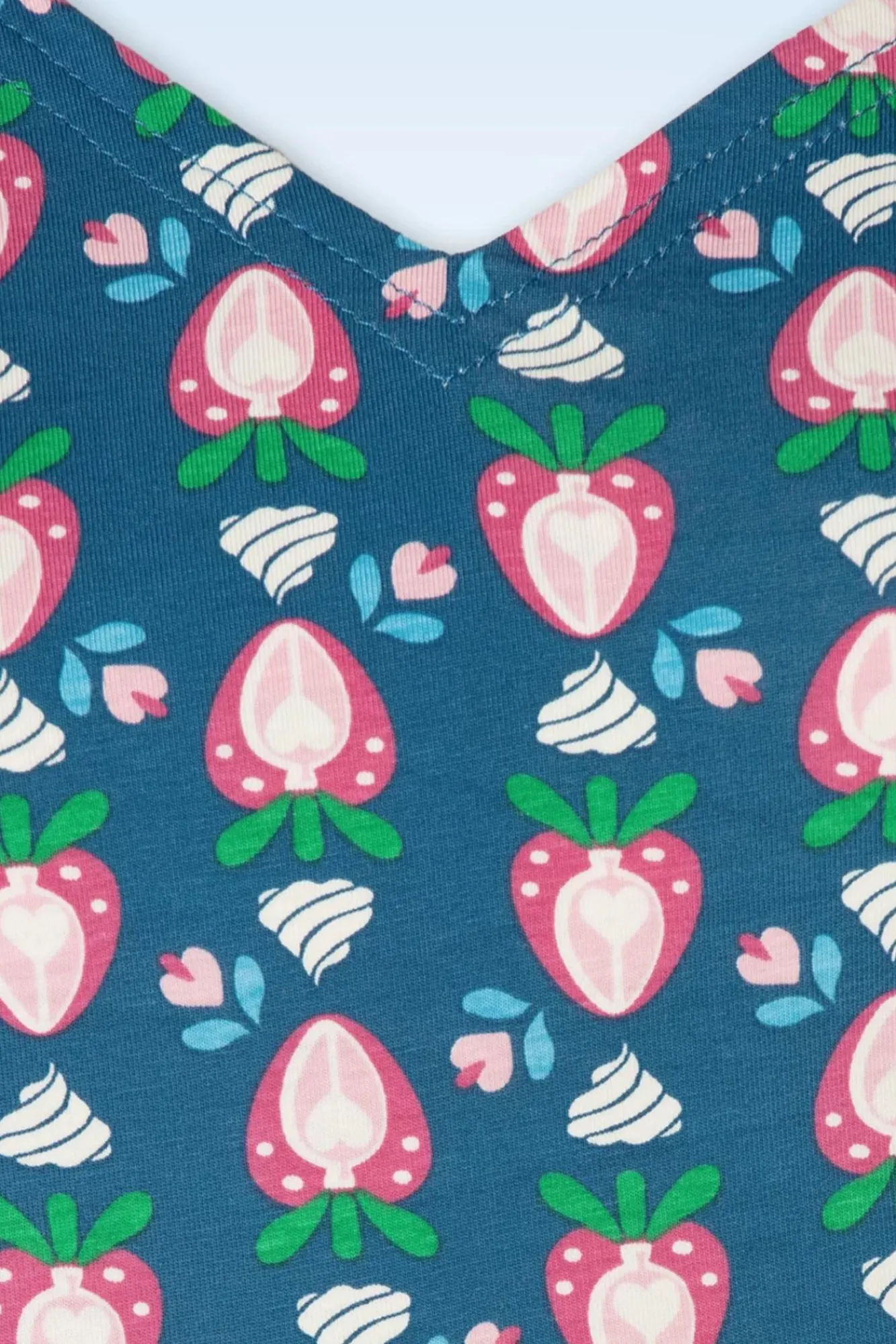 ”I Love You Berry Much!” Ze Is Uitgevoerd In Een Super Comfortabele En Stretchy, Blauwe Katoenmix Voorzien Van Een Geweldige Print Met Aardbeitjes.