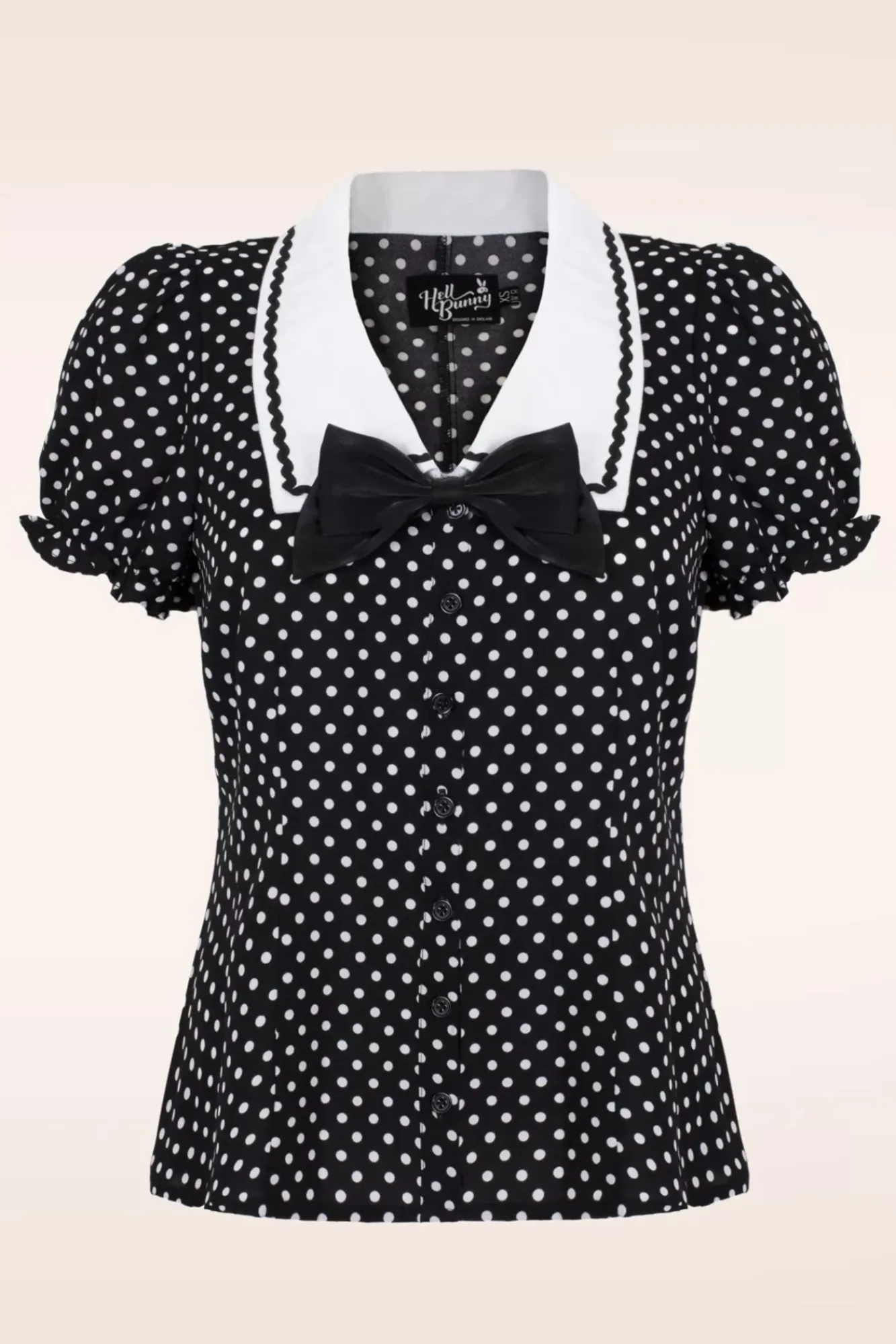 Naomi Heeft Ons Hartje Gestolen! Ze Heeft Korte Pofmouwen, Een Contrasterende Kraag En Een Afneembare Strikbroche. Uitgevoerd In Een Soepele, Luchtige, Zwarte Stof (Stretcht Niet!) Bezaaid Met Witte Polkadots Die Heerlijk Draagt. Ben Jij Al Verliefd? 😉