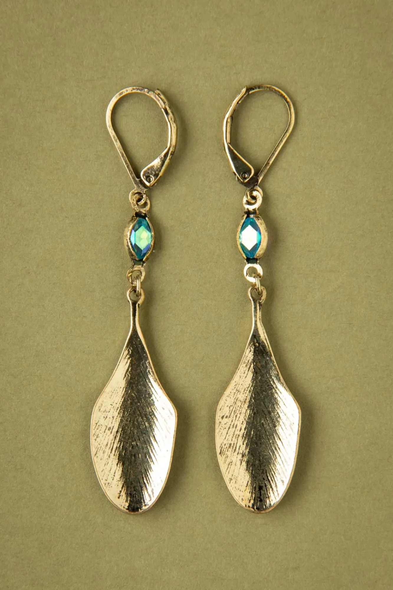 Echte Kunstwerkjes Voor In Je Oren! Dit Prachtpaar In Jugendstil Is Uitgevoerd In Messingkleurig Metaal En Voorzien Van Een Fonkelend Steentje En Een Pauwveer Hanger.