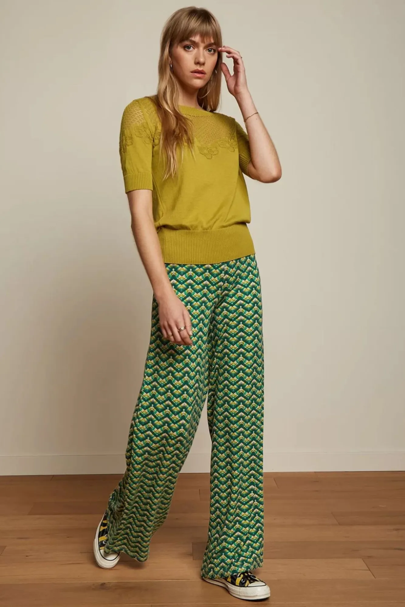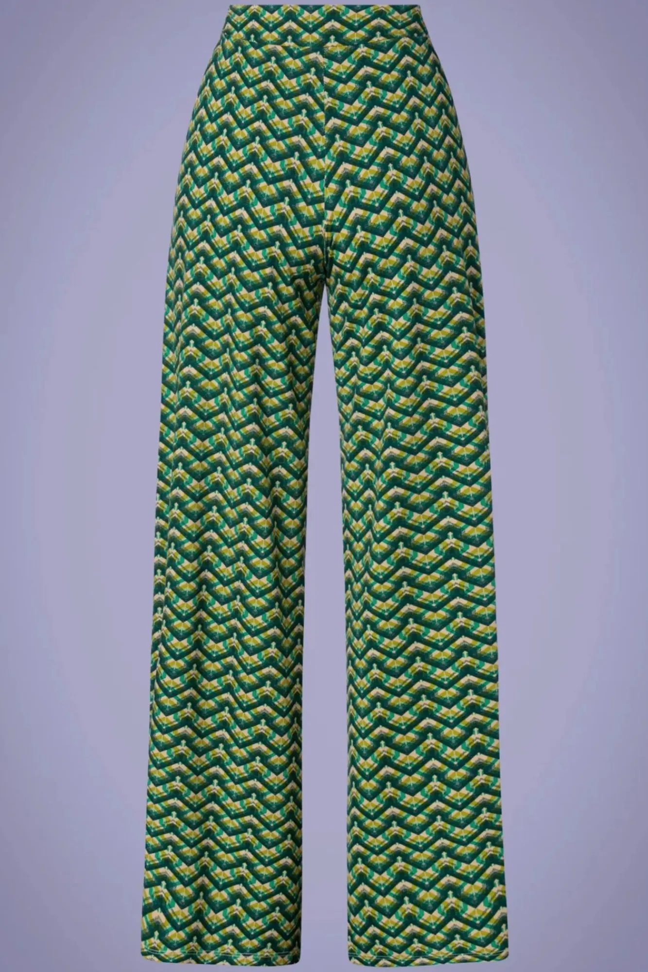 Een Fabulous Sixties Stijl Broek Met Het Comfort Van Een Legging? Yes Please! Deze Border Palazzo Brazza Pants In Jasper Green Heeft Een Hoge (Elastische) Taille En Lange Wijd Uitlopende Pijpen Waardoor Je Benen Eindeloos Lang Lijken. 😉 Uitgevoerd In Een Stevige Maar Soepele En Stretchy Ecovero Viscosemix, Voorzien Van Een Prachtige Retroprint, Die Heerlijk Draagt. Comfortabel Zag Er Nog Nooit Zo Goed Uit!