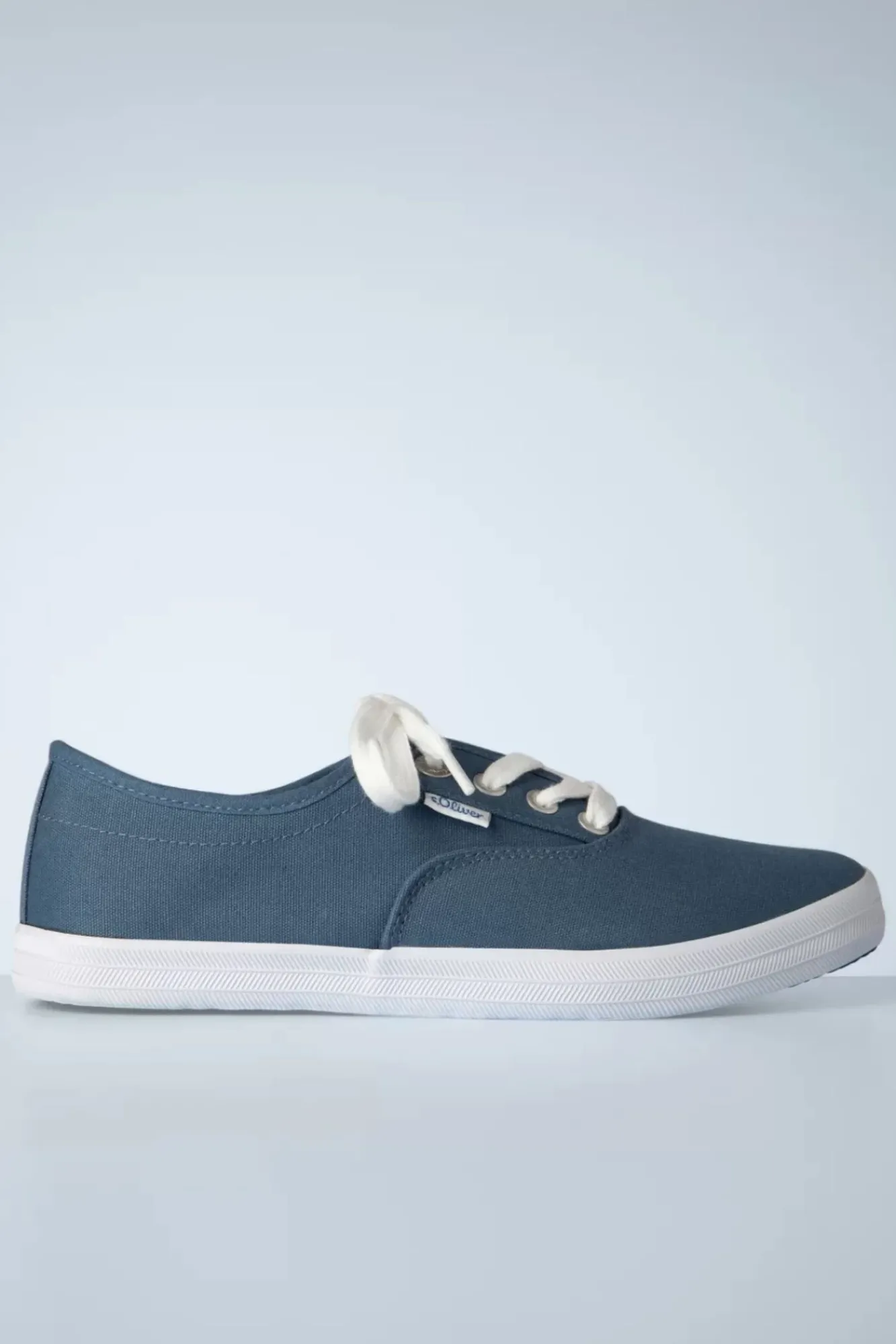 ”Forget Glass Slippers, This Princess Wears Sneakers!” Voorzien Van Een Opvallende Witte Zool, Witte Veters En Uitgevoerd In Stevig, Inktblauw Canvas.