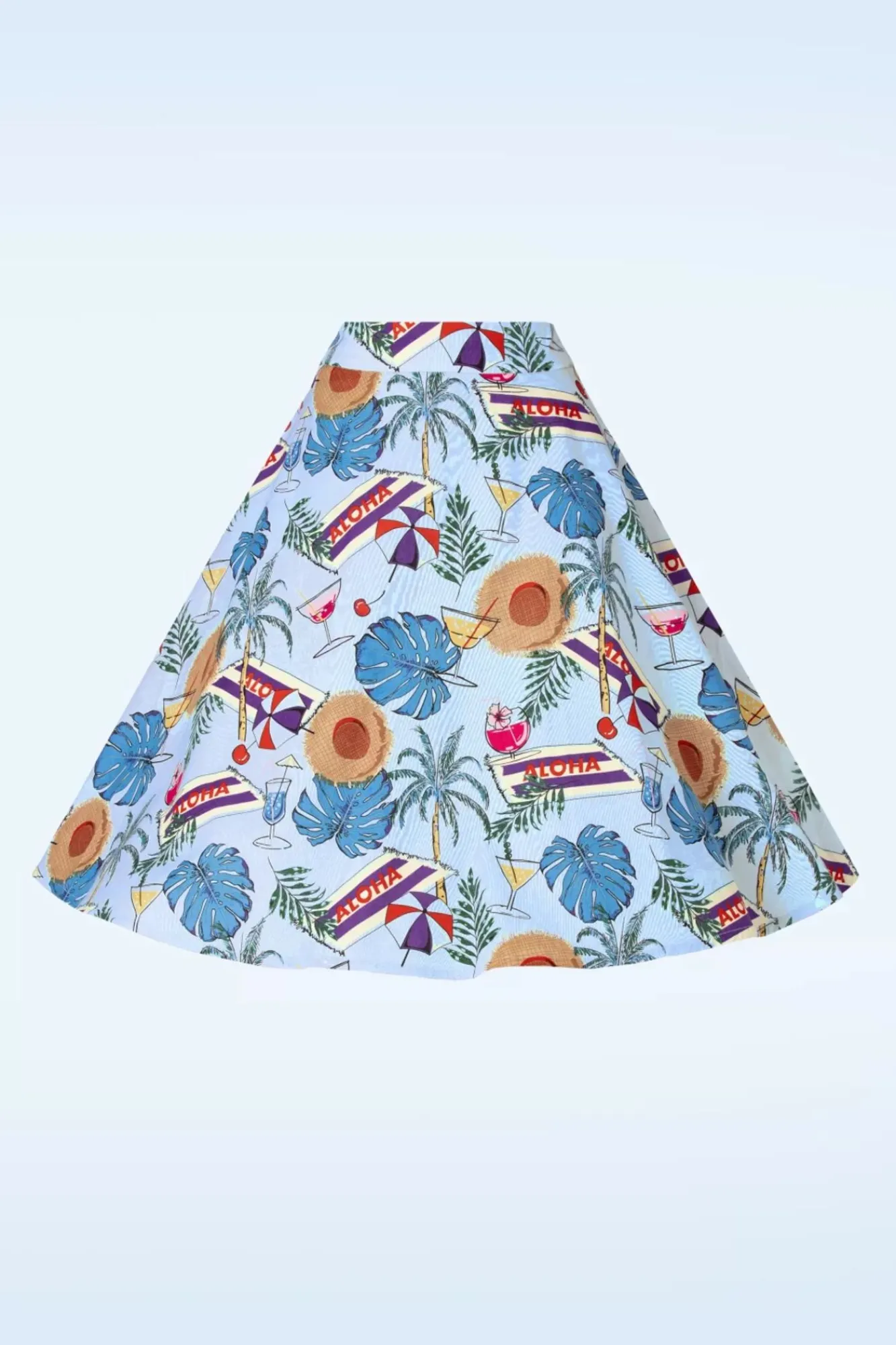 Aloha, Swing Cutie! Deze Zwierige Rok Is Uitgevoerd In Een Stevige Maar Luchtige, Lichtblauwe Non-Stretchy Katoen Met Een Tropische Print. Swing Jij De Zonnige Dagen Tegemoet? 😉