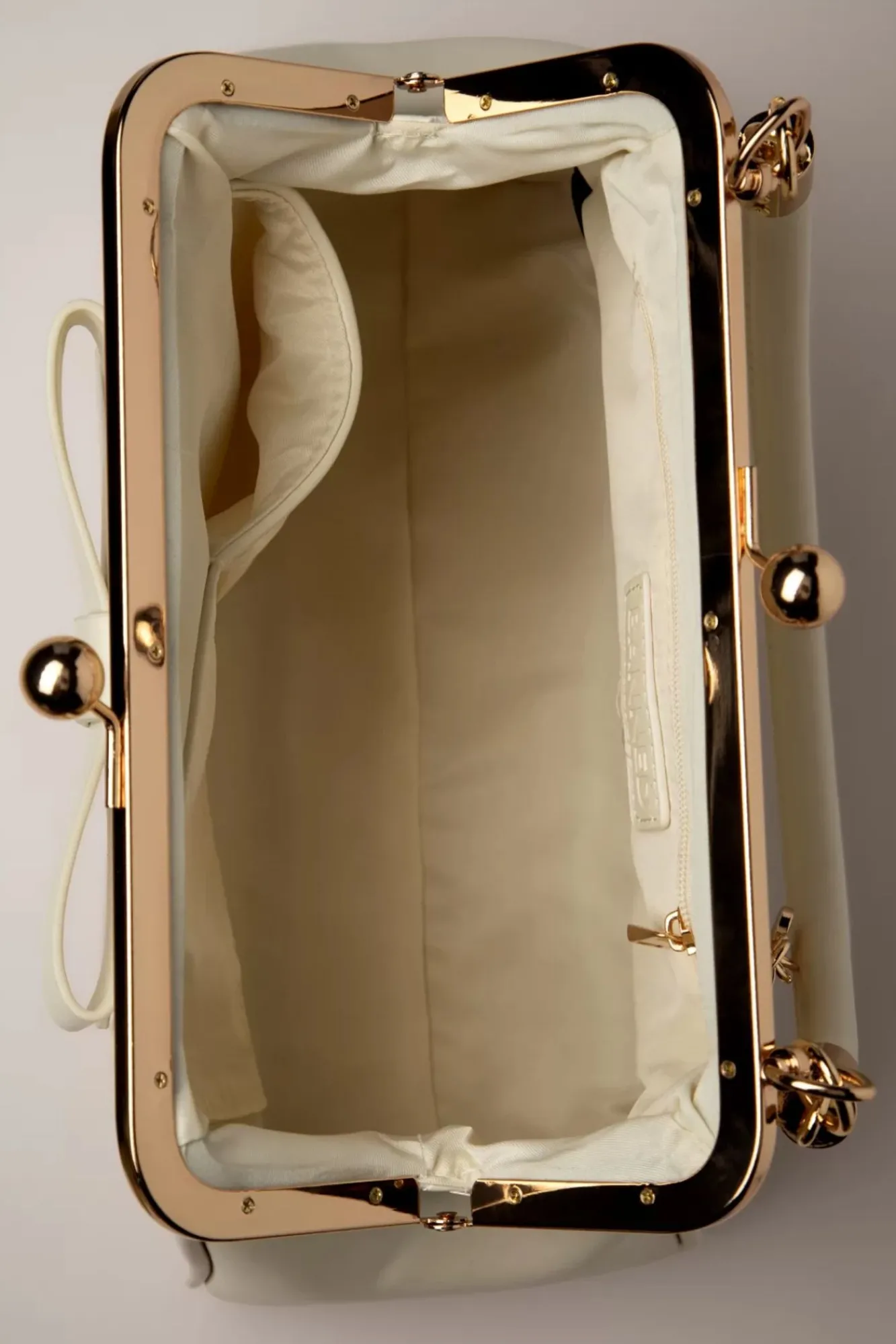 ”Just A Daydream Away!” Dit Kleine Zusje Van De Klassieke American Vintage Bag Heeft Een Opvallende Goudkleurige Metalen Klipsluiting Voor Een Echte Vintage Look En Is Uitgevoerd In Crèmekleurig Mat Imitatie Leder Afgewerkt Met Een Schattige Strik.