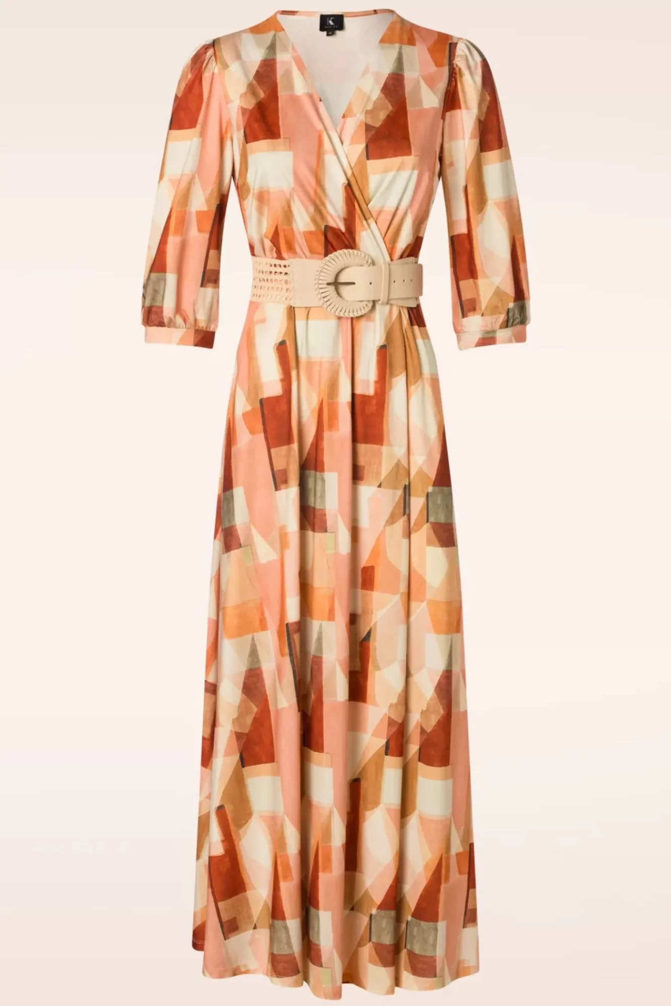 Nieuwe Lente/Zomercollectie ~ Maxi-Maal Opvallen Met Minimale Moeite? Dan Is Josie Jouw Perfecte Match Dit Seizoen. Deze Maxi Jurk Is Uitgevoerd In Een Soepel En Stretchy, Slinky Stofje Voorzien Van Een Lichte Glans En Een Oogverblindende, Grafische Print In Beige- En Rozetinten. Niet Voor Niks De Favoriet Van Onze Topvintage Collega’s! 😉