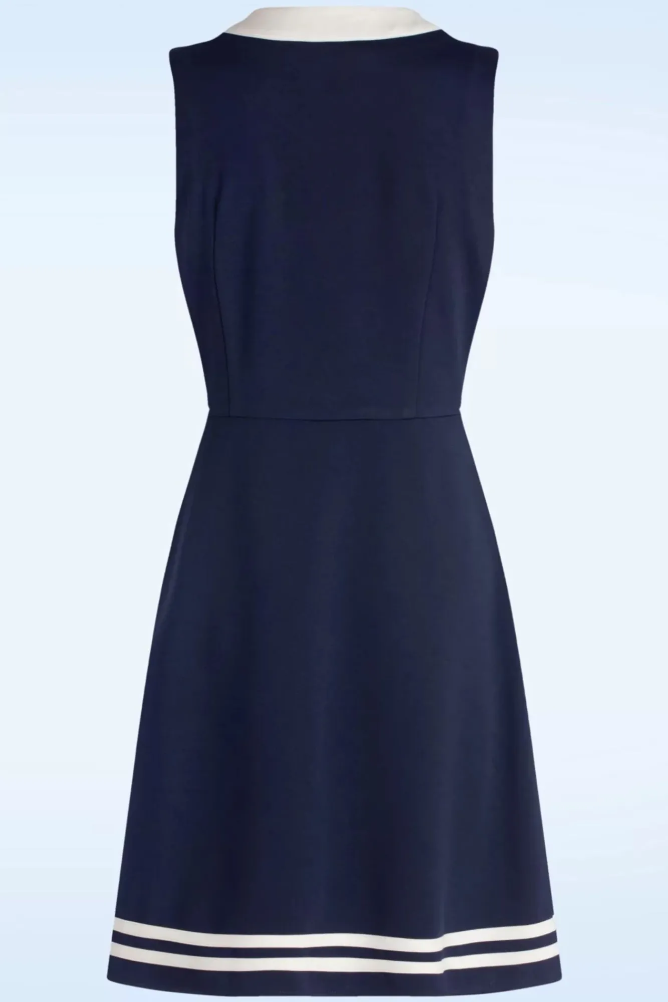 ”Lets Sail Away!” Ze Is Uitgevoerd In Een Ietwat Dikkere, Maar Toch Soepele En Stretchy, Marineblauwe Stof Voorzien Van Een Vaste Witte Strik En Witte Details.