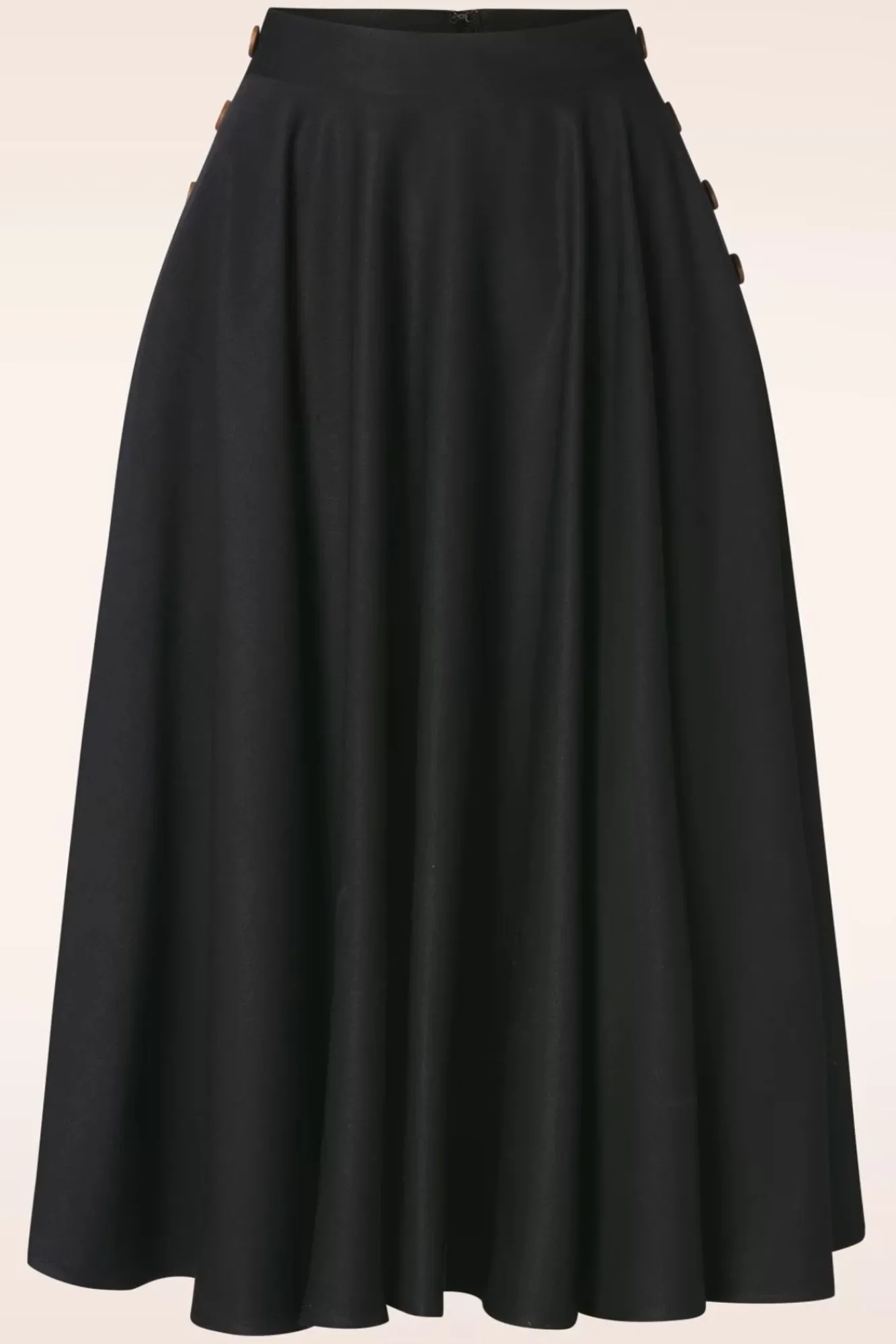 Klassiek, Tijdloos En Ontzettend Vrouwelijk! Deze Polly May Swing Skirt In Black Kun Je Eindeloos Combineren! Je Draagt Haar Hoog In De Taille Vanwaar Zij Uitloopt In Een Elegante, Zwierige Swing Rok Met Zijwaartse ‘Faux’ Knoopdetails En Handige Steekzakjes. Uitgevoerd In Een Soepel Vallend, Zwart Stofje (Stretcht Amper) Die Heerlijk Draagt. Deze Swing Beauty Wordt Gegarandeerd Jouw Nieuwe Zomer Favoriet!