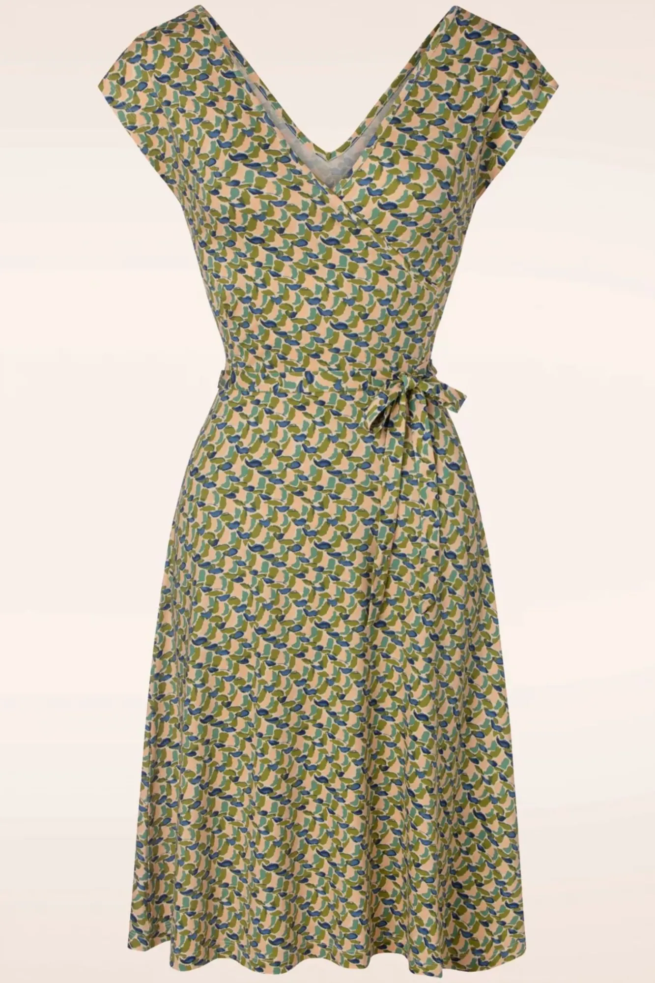 Verliefd Met Een Hoofdletter V! Want Deze Mira Merlini Dress In Woodbine Green Is Voorzien Van Een Prachtige V-Hals Met Vaste Overslag Maar Is Ook Op De Rug Uitgesneden In Een Lage V! Bovendien Ademt Ze Één En Al Vintage Dankzij Haar Flatterende Semi-Swing Stijl, Haar Korte Kapmouwtjes En De Afneembare Matching Sash In De Taille. Uitgevoerd In Een Soepele En Stretchy, Lentegroene (Ecovero) Viscosemix Met Een Geweldige, Kleurrijke Retro Print Die Heerlijk Luchtig Draagt. En Je Weet Wat Ze Zeggen; Geef Je Over Aan De Liefde! 😉