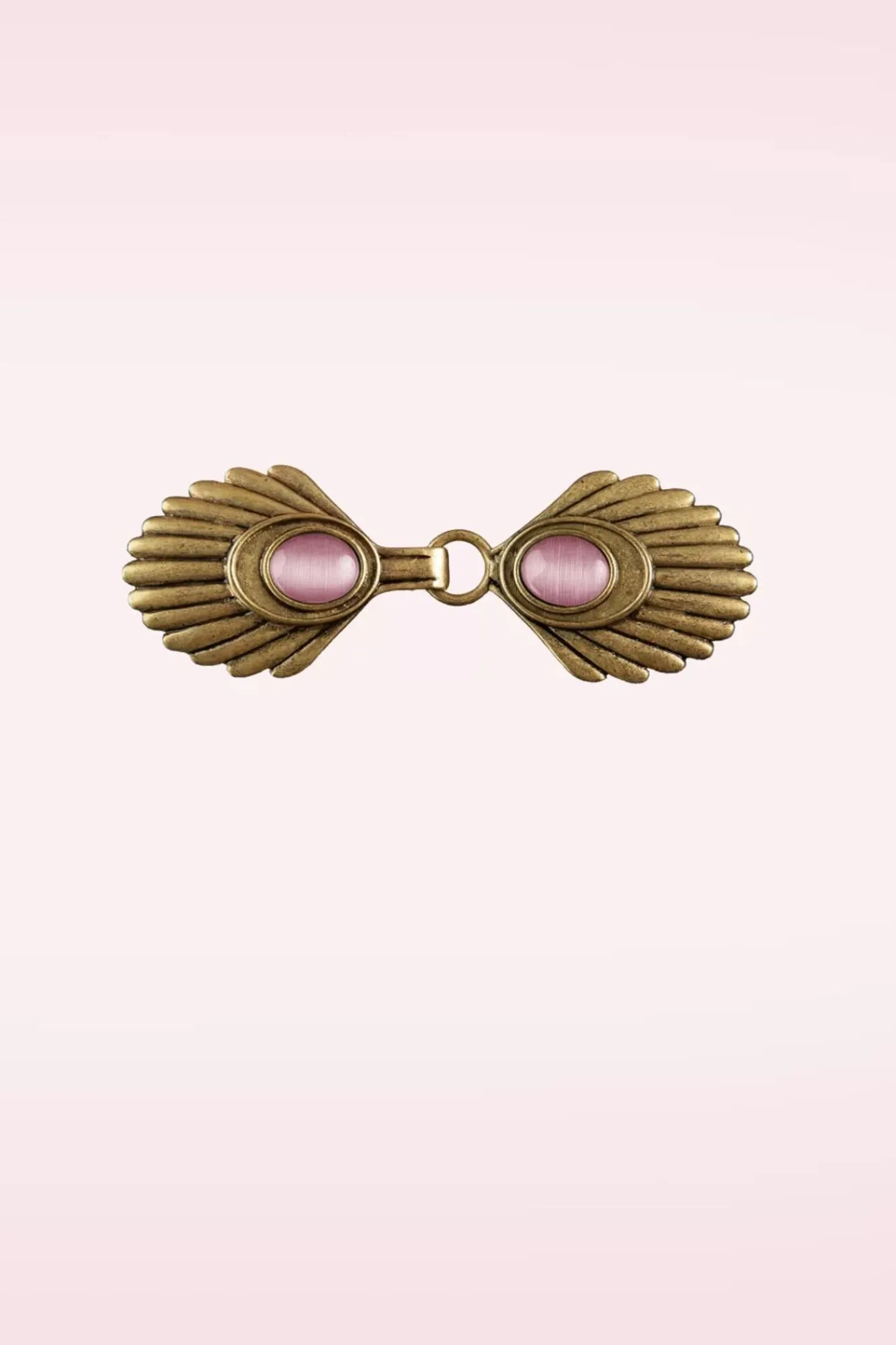 Al Die Leuke Vestjes, Jasjes En Kimono’s Zonder Sluiting Kun Je Nu Tóch Dicht Dragen Dankzij Deze Handige En Mooie Clips In Art-Deco Stijl. Ook Op Een Poncho, Sjaal Of Blouse Staan Ze Fantastisch. Uitgevoerd In Antiek Goudkleurig Messing Met Een Poederroze Steen Van Glas.