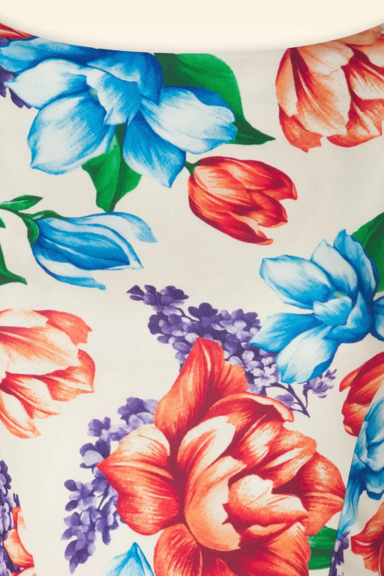 Nieuwe Collectie ~ Muurbloempje Of ‘Wildflower’… In Deze Vrolijke Semi-Swing Beauty Bloei Je Helemaal Op! Uitgevoerd In Een Een Stretchy En Crêpe Achtig, Crèmekleurig Stofje, Met Een Kleurrijke Print Van Bloemen.